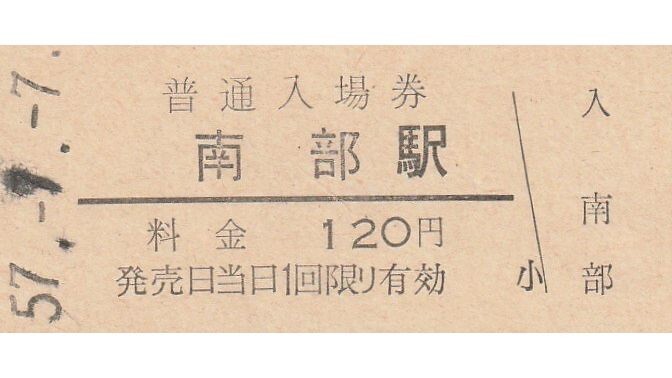 G400.紀勢本線 南部駅 120円 57.7.7【0012】