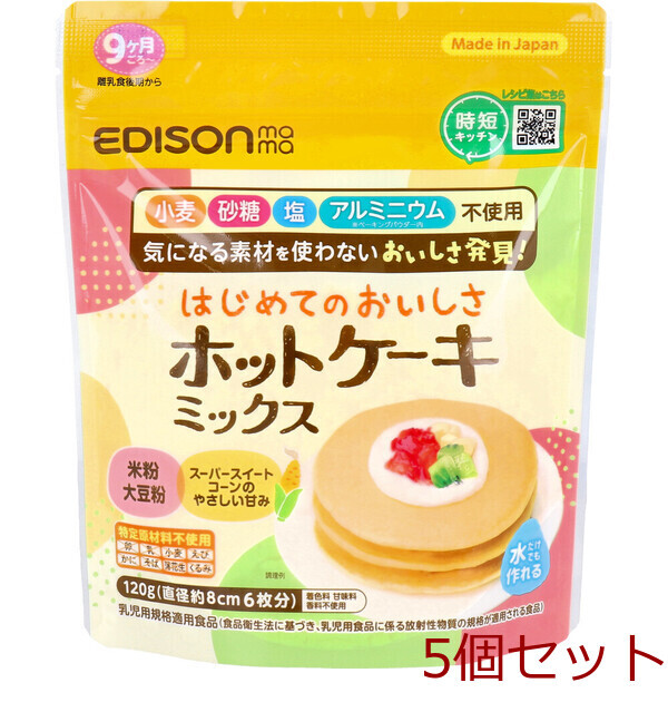 エジソンママ はじめてのおいしさ ホットケーキミックス 120g 5セット