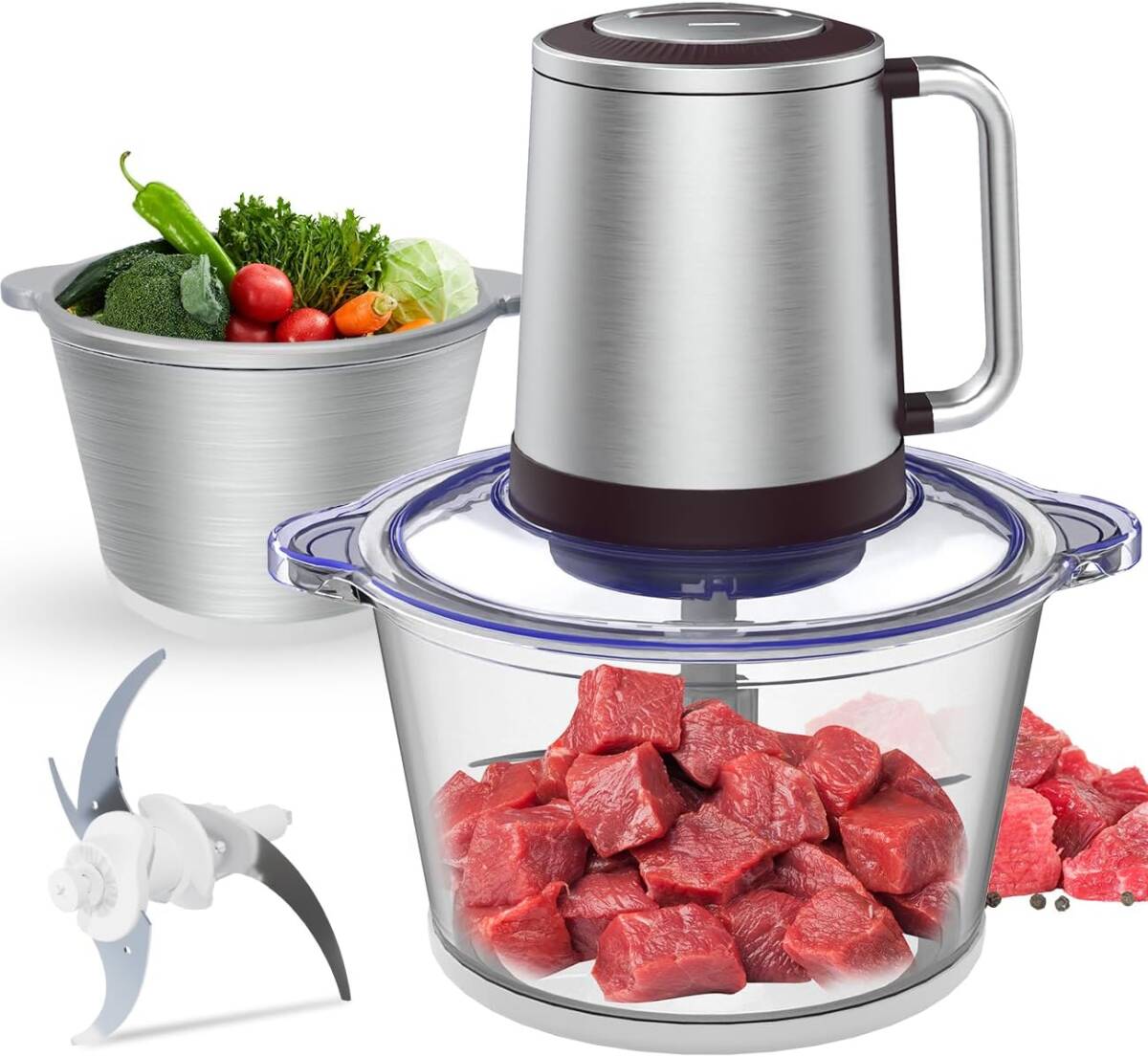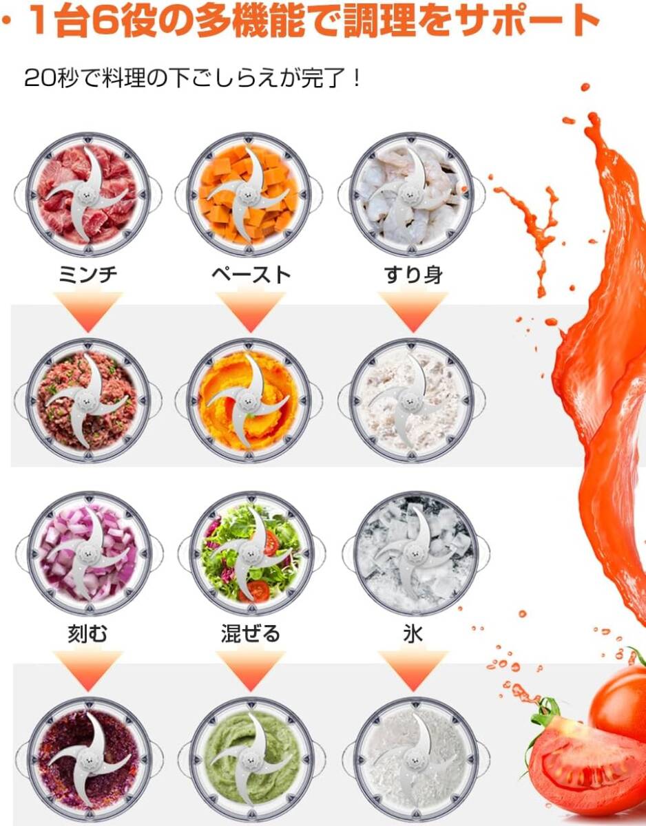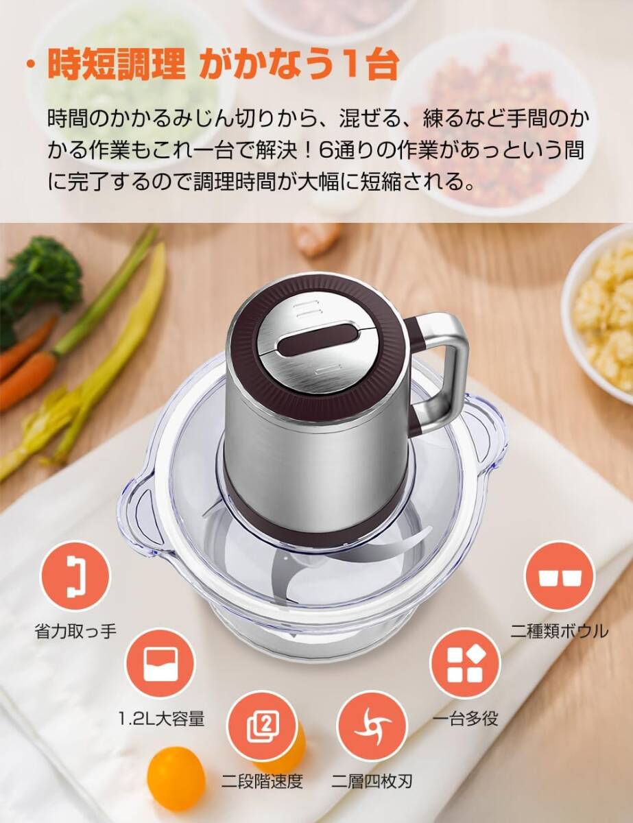 フードプロセッサー【1.2L大容量 & 2種類ボウル】みじん切り器 500Wハイパワー ステンレス4枚刃 氷も砕ける ブレンダー 離乳食 電動