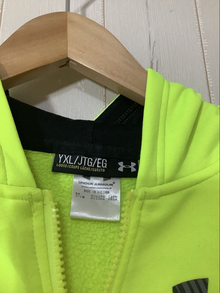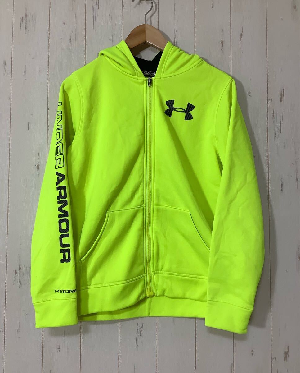 て1785 UNDER ARMOUR アンダーアーマー STORM ジップアップジャージパーカー YXL キッズ 蛍光イエロー ロゴプリント 裏起毛 LOOSE
