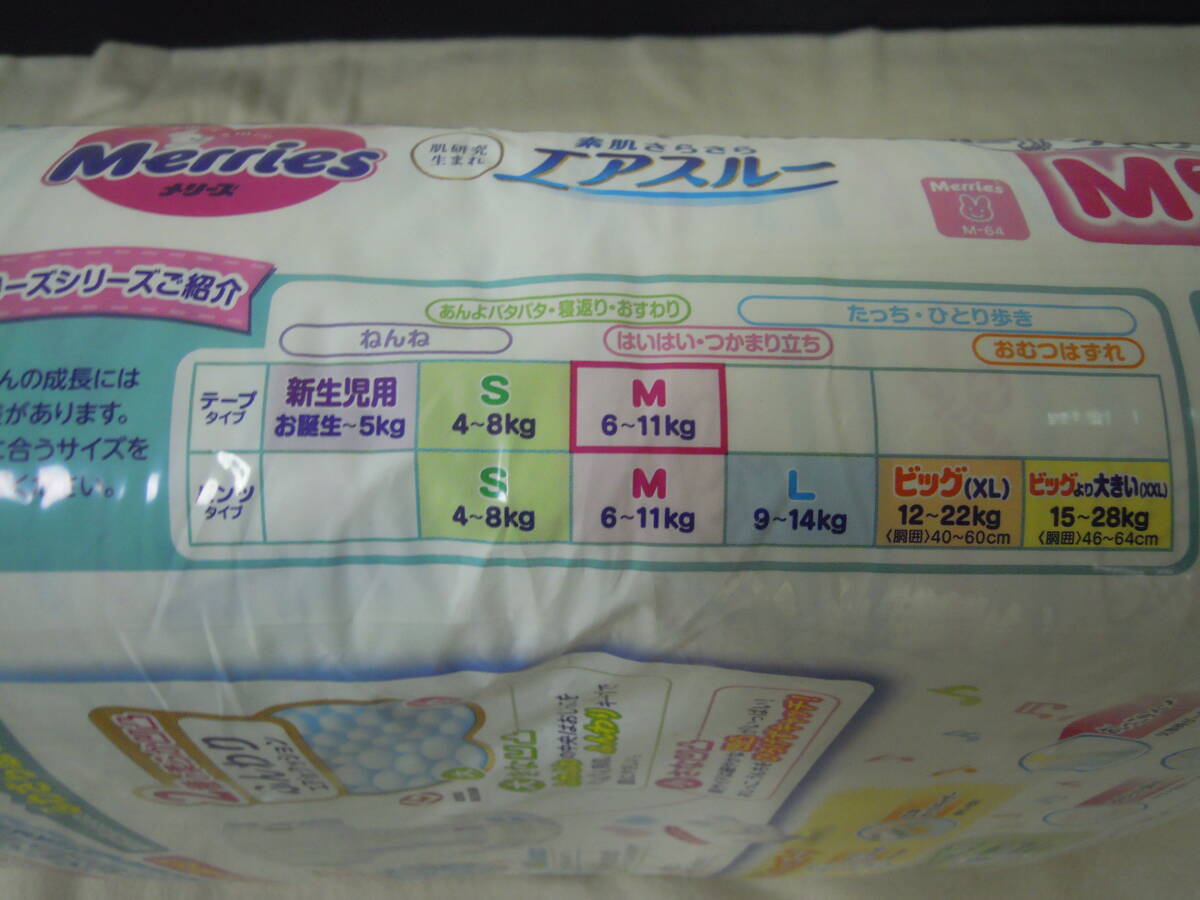 (け-R-36) 紙おむつ 花王 メリーズ エアスルー テープタイプ M 6~11㎏ 子供用 長期保管品