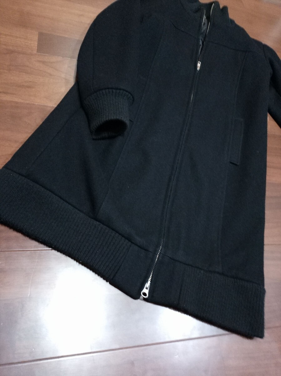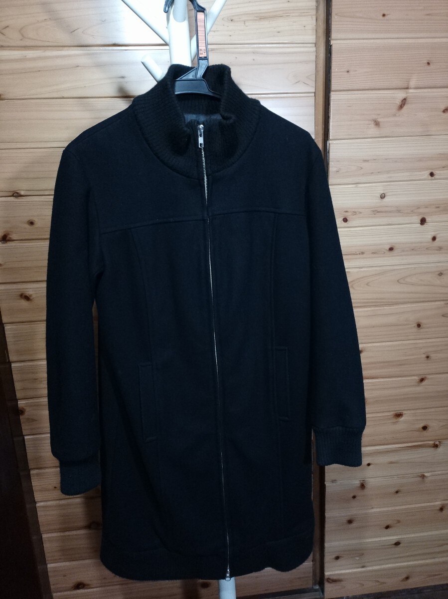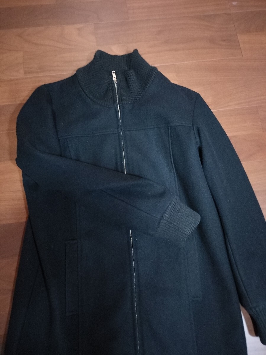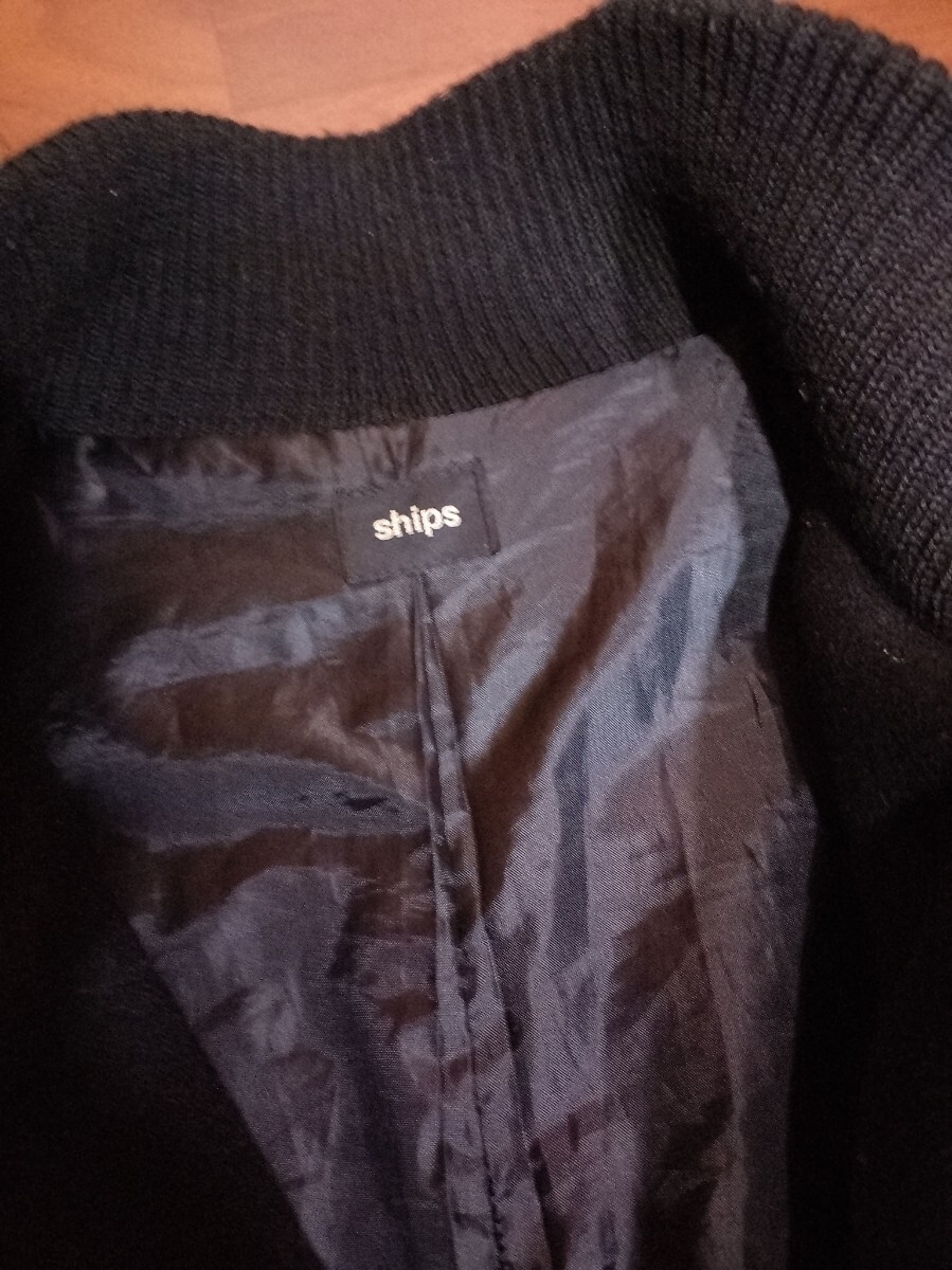 SHIPS シップス ロング メルトンウールコート ドライバーズ コート 日本製 90sヴィンテージ 襟袖裾リブ アウター 黒 レディース
