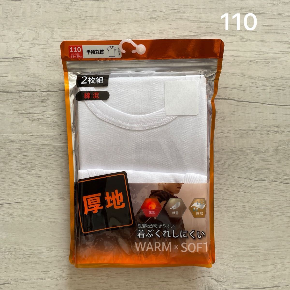 【新品未使用】 110 半袖丸首 2枚セット 肌着 白 アンダーシャツ インナー 軽量 保温 速乾 キッズ ボーイズ 男の子 厚地 ホワイト