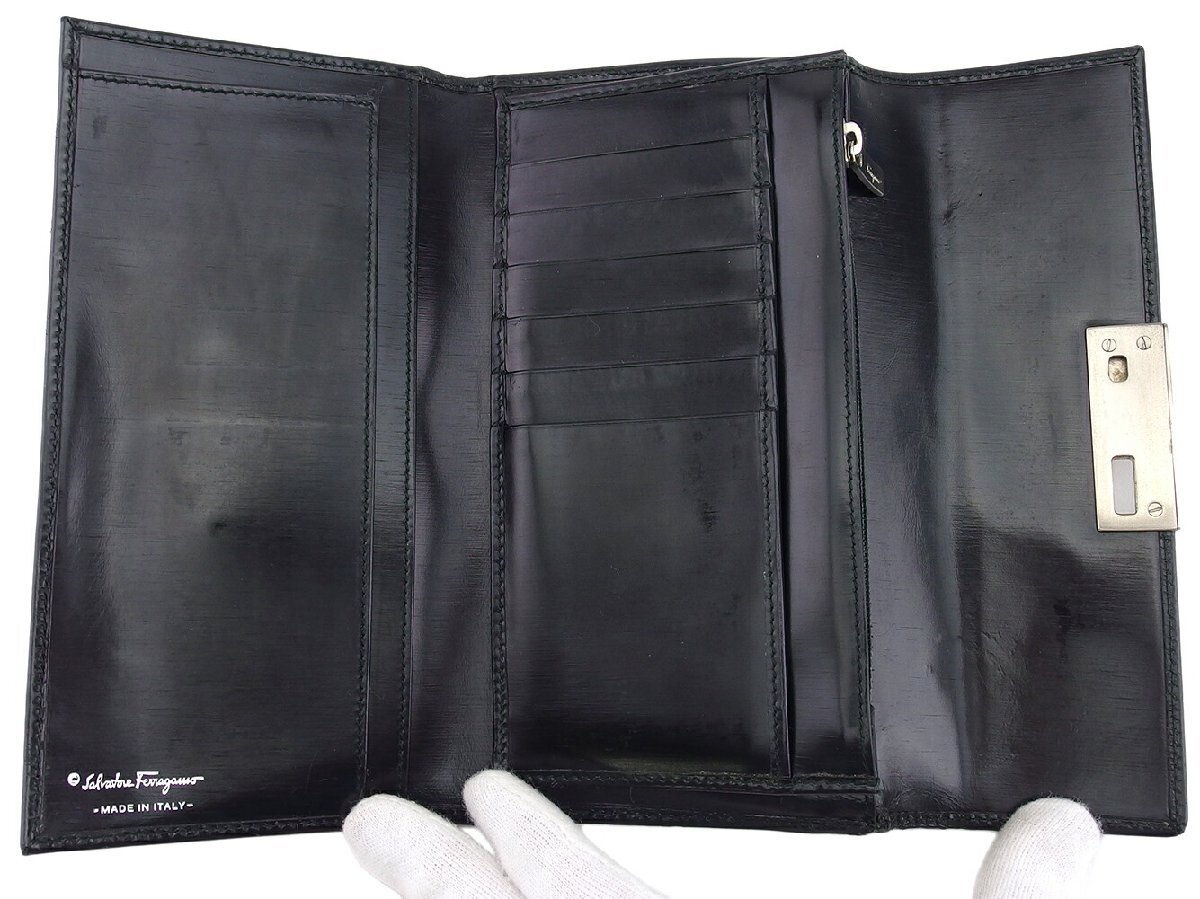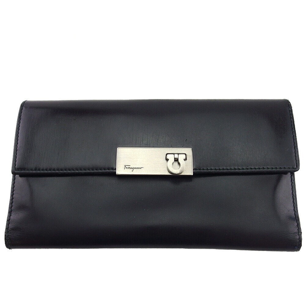 【ブラックフライデー30%OFFクーポン】サルヴァトーレフェラガモ Salvatore Ferragamo 長財布 ガンチーニ Nero レディース 中古