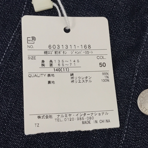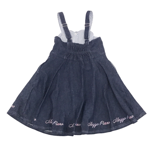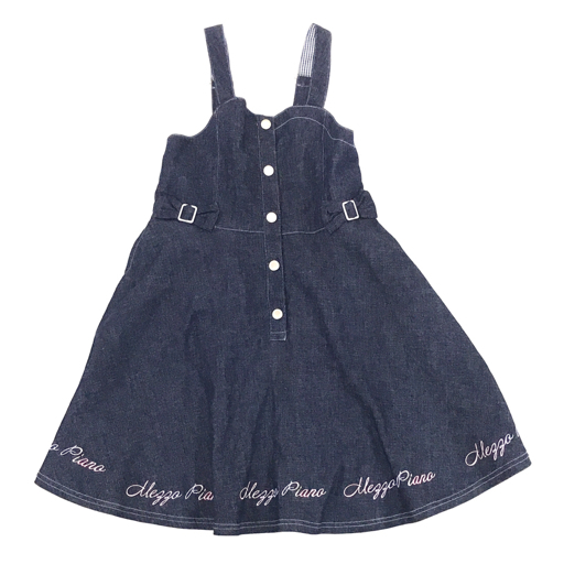 新品同様 メゾピアノ サイズ 140 裾ロゴ刺繍 前ボタン ジャンパースカート キッズ服 タグ付き 未使用品 mezzo piano