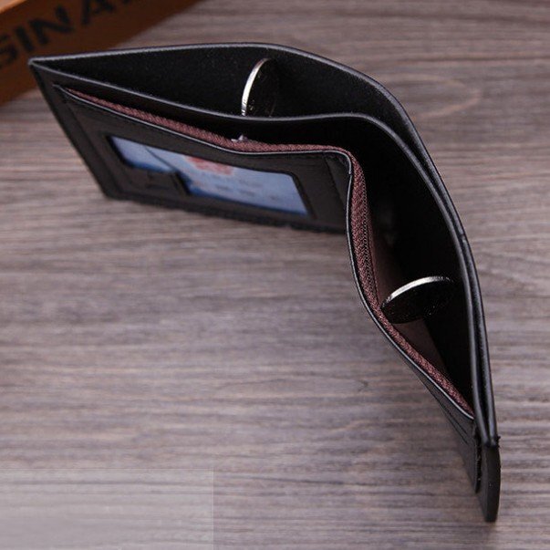 【vaps_5】メンズ 二つ折り財布 レザー調 横型 ブラック 財布 カード入れ カード収納 札入れ 定期入れ シンプル ビジネス 送込