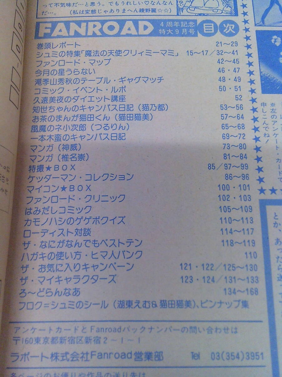 X82【ファンロード/1984年9月号】魔法の天使クリィミーマミ 原田知世 ジャッキーチェン 薬師丸ひろ子