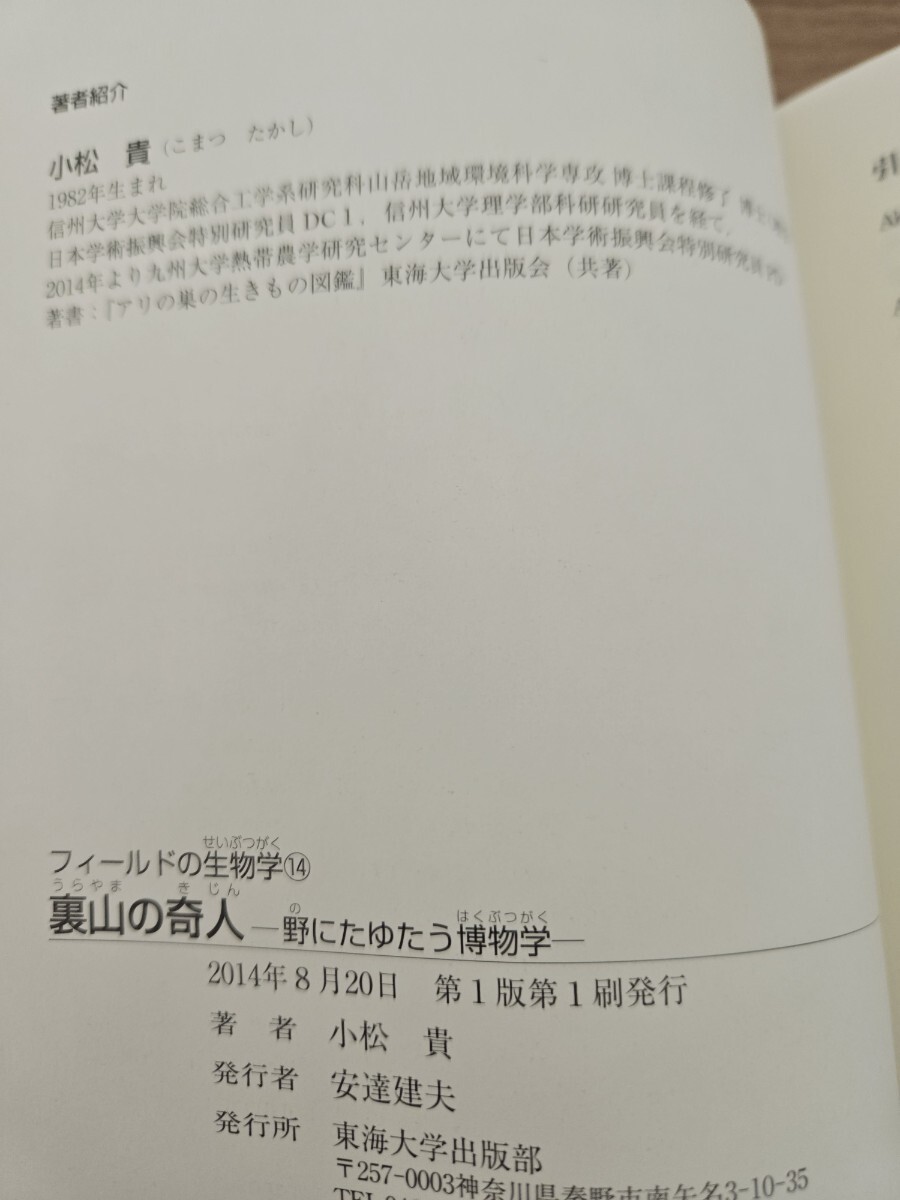 裏山の奇人 野にたゆたう博物学 フィールドの生物学14/小松貴(著者)【管理番号Y6cp本410】訳あり