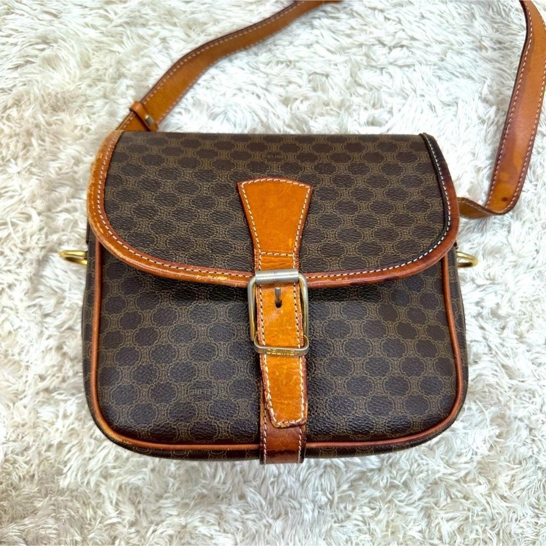 【美品】CELINE セリーヌ ショルダーバッグ ブラウン マカダム レザー レディース トリオンフ 肩掛け レザー 本革 フラップ ビジネス