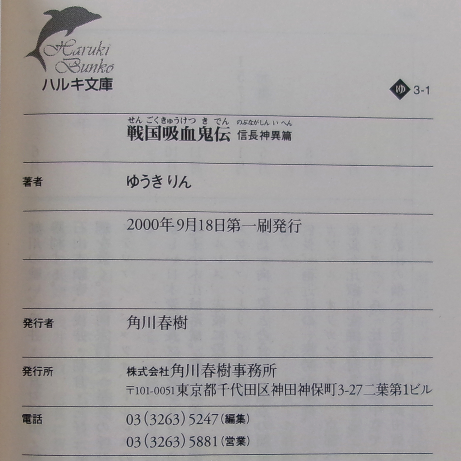 □ 戦国吸血鬼伝 信長神異篇 [ゆうきりん]著 / 2000年 第1刷 / ハルキ文庫