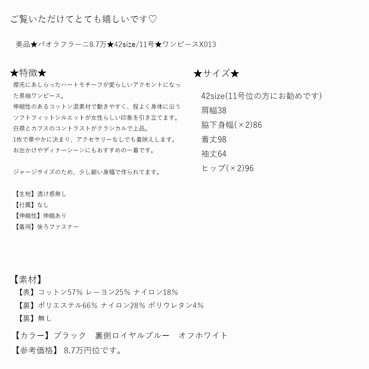 美品★パオラフラーニ8.7万★42size★ワンピースX013