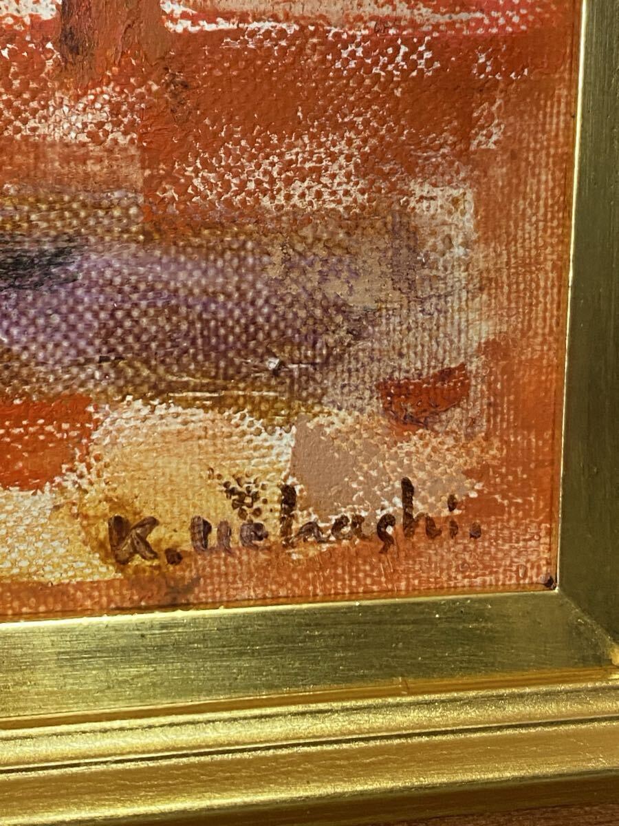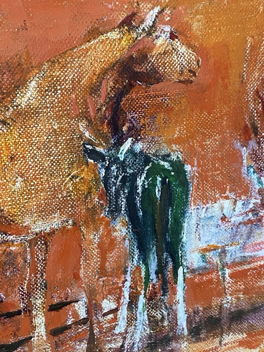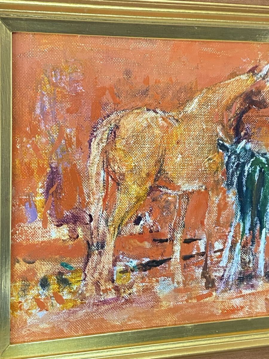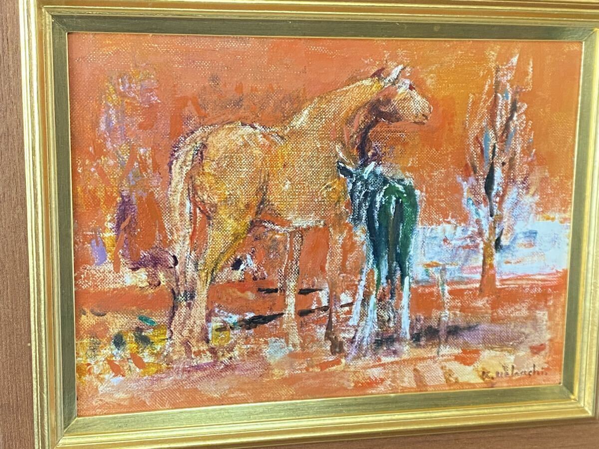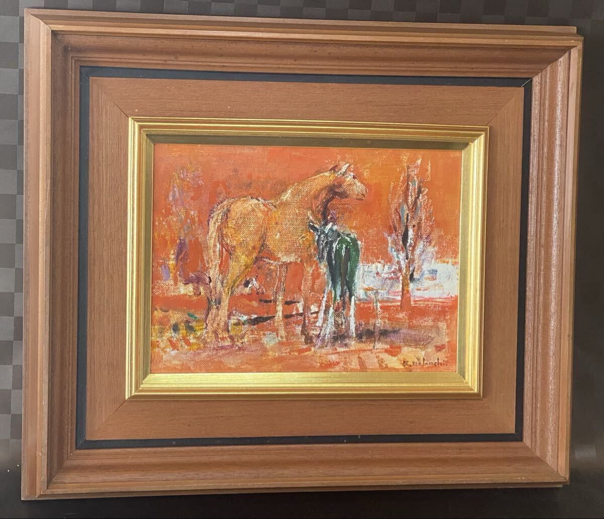 真作 油彩画 油絵 上橋薫 【親仔】 F4号 馬の絵 1970年 額縁 額装 インテリア