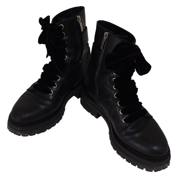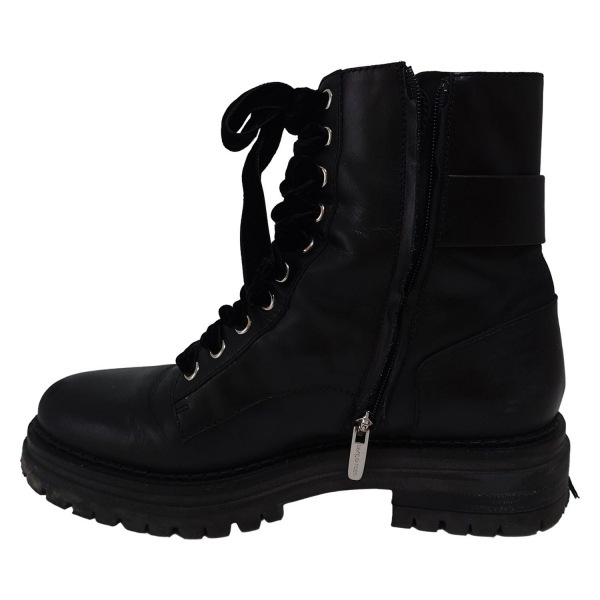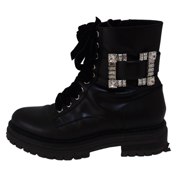 セルジオロッシ sergio rossi ショートブーツ 37 - レザー 黒 レディース ビジュー/レースアップ 靴