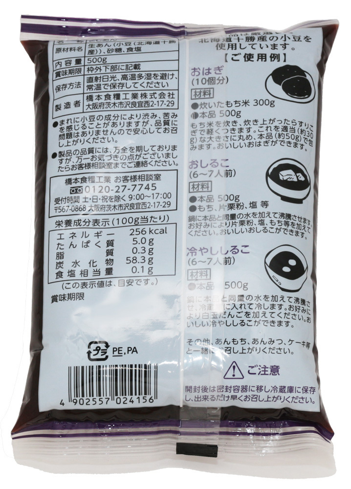 こしあん 500g×3袋 北海道十勝産 あんひとすじ 橋本食糧 こし餡 漉し餡 十勝産小豆使用 餡子 あんこ アンコ 国産 国内産