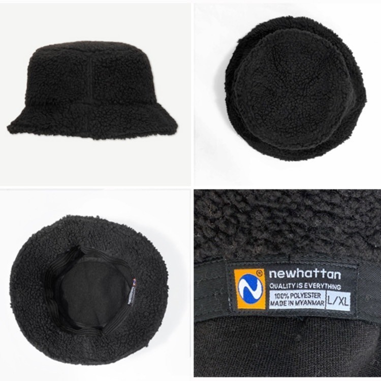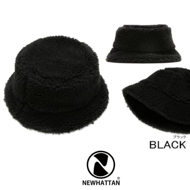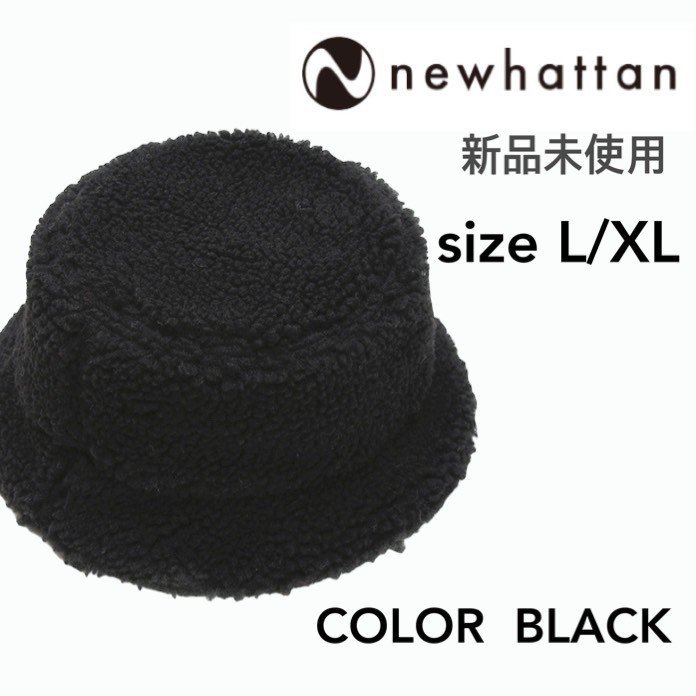 新品未使用 ニューハッタン ボアフリース バケットハット ブラック 黒 L/XLサイズ NEWHATTAN 2512 男女兼用