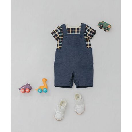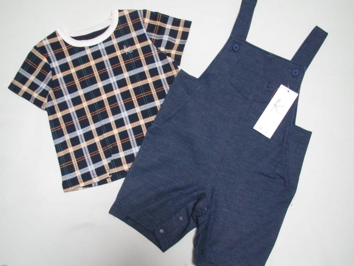 新品 ¥8800 組曲 kumikyoku クミキョク 2点 セットアップ カバーオール ロンパース 半袖Tシャツ カットソー 男の子 80 90cm ベビー 紺