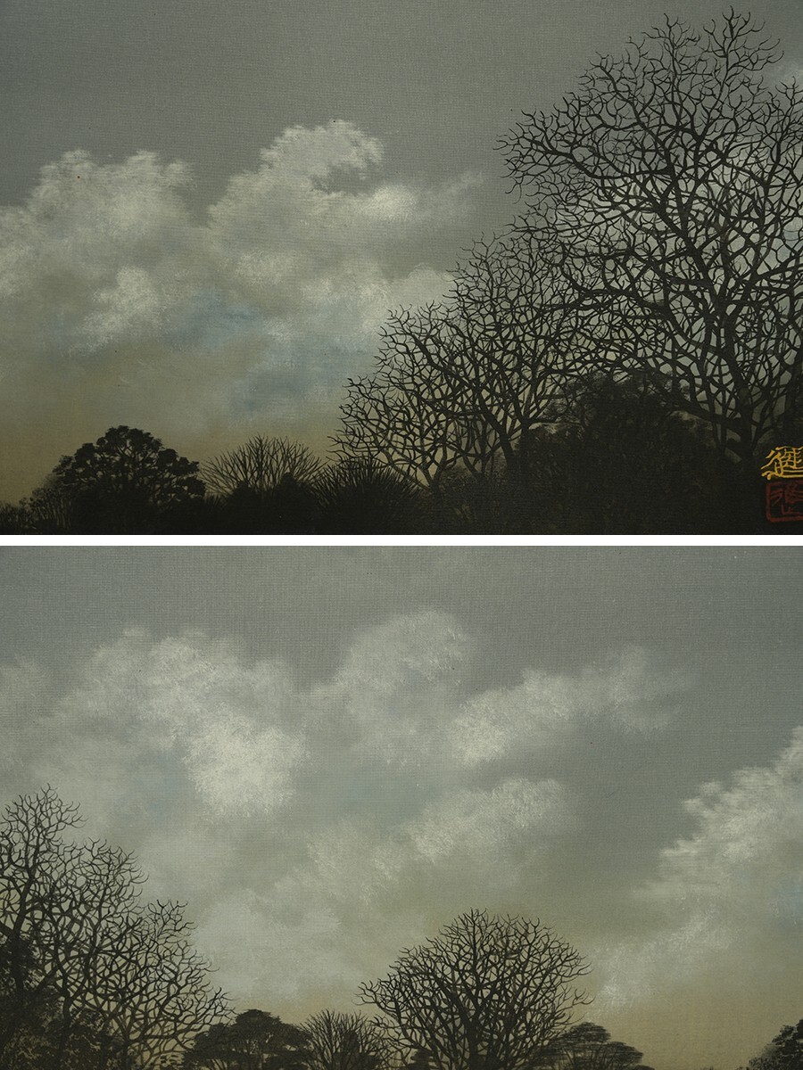 M1121 【本物保証】河原 進『富士』日本画 掛軸 絹本 共箱
