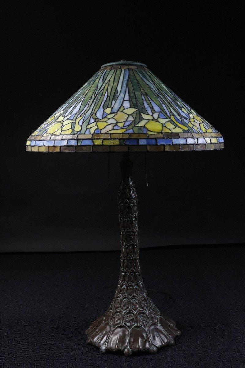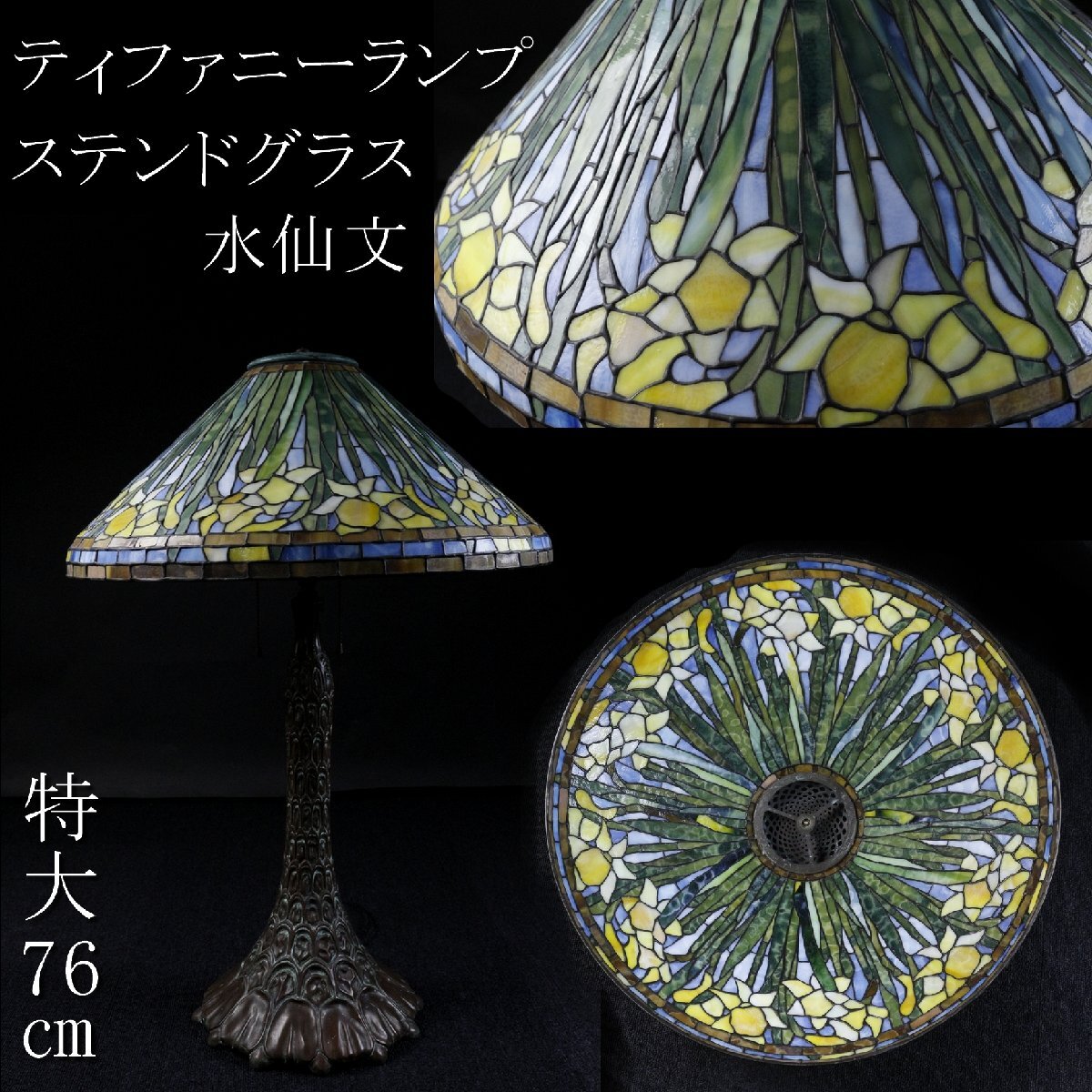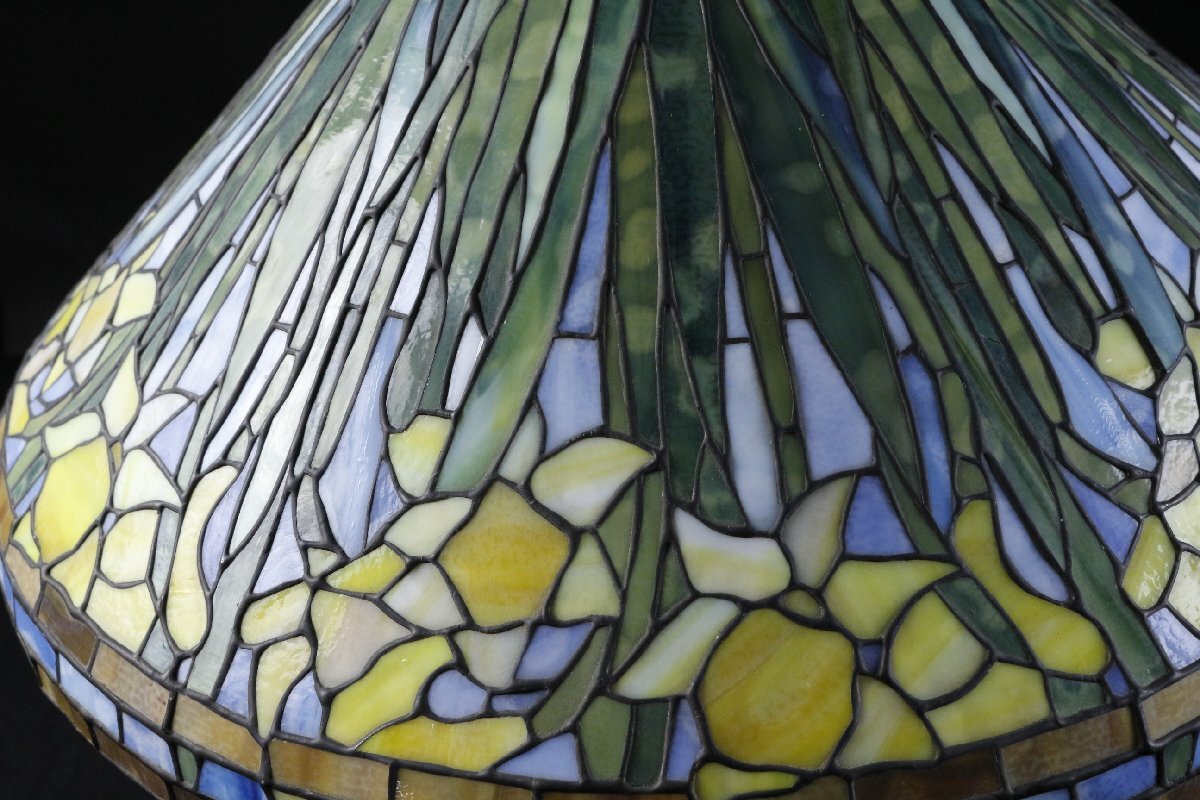 【LIG】ステンドグラス ティファニーランプ 水仙文 特大76㎝ アンティーク 資産家収蔵品 [.EY]25.10