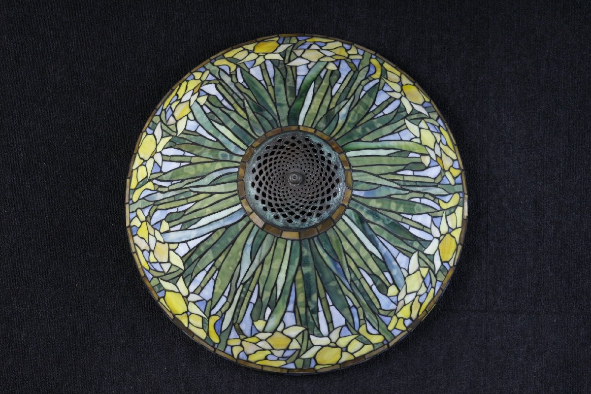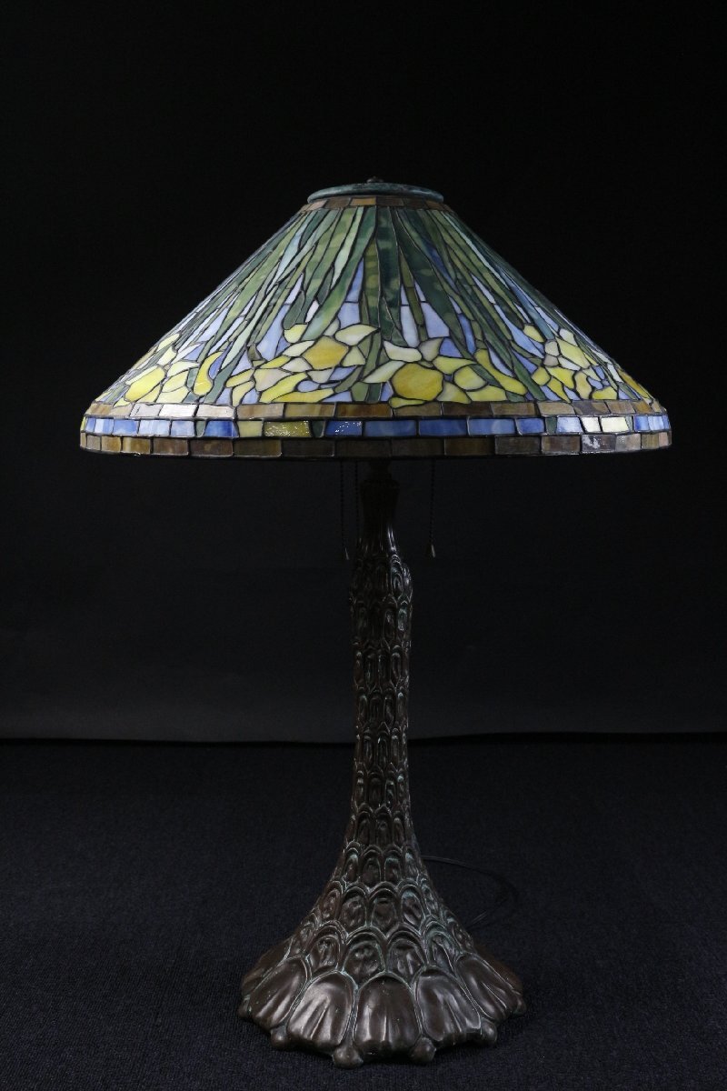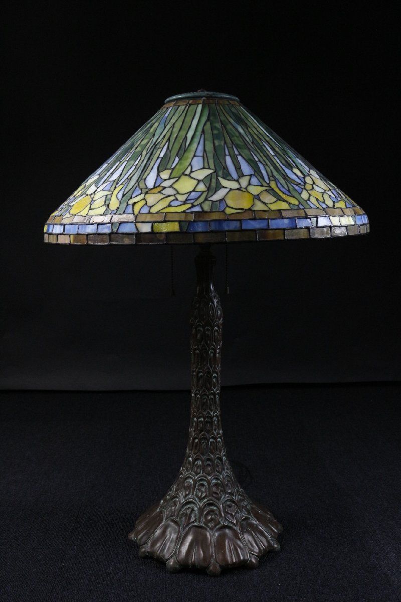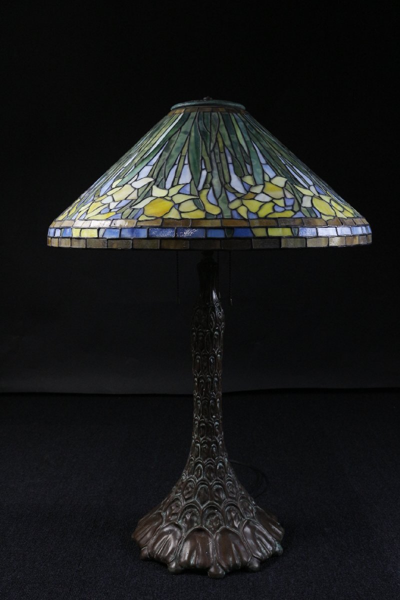 【LIG】ステンドグラス ティファニーランプ 水仙文 特大76㎝ アンティーク 資産家収蔵品 [.EY]25.10