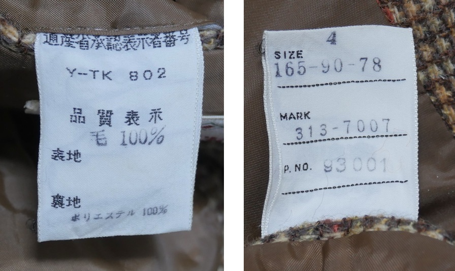 ビンテージ 三越 × ハリスツイード チェック テーラードジャケット 茶 165-90-78 (S相当)HARRIS TWEED