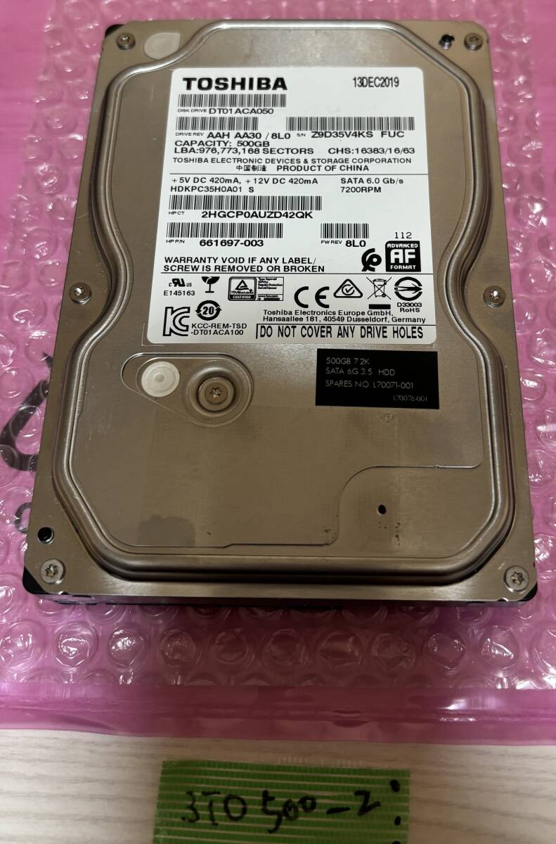 【正常動作品】TOSHIBA製 3.5インチHDD 500GB-2