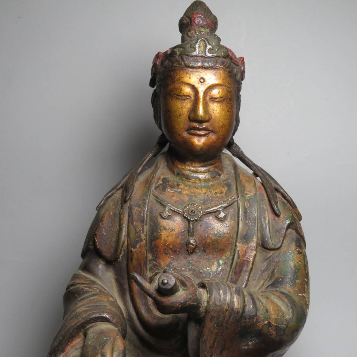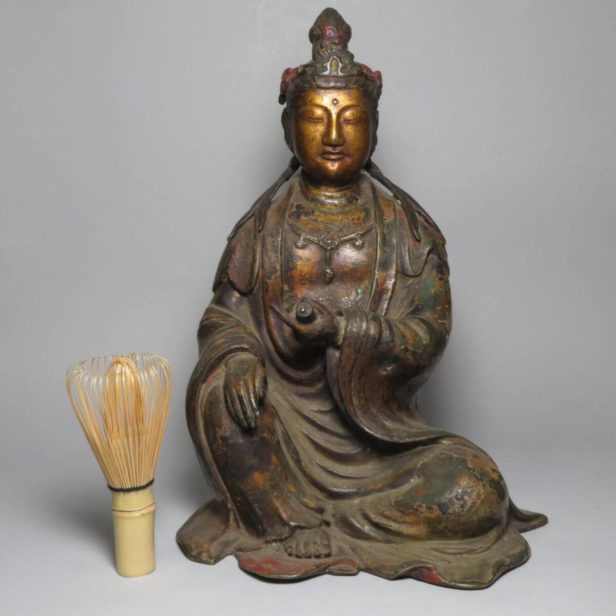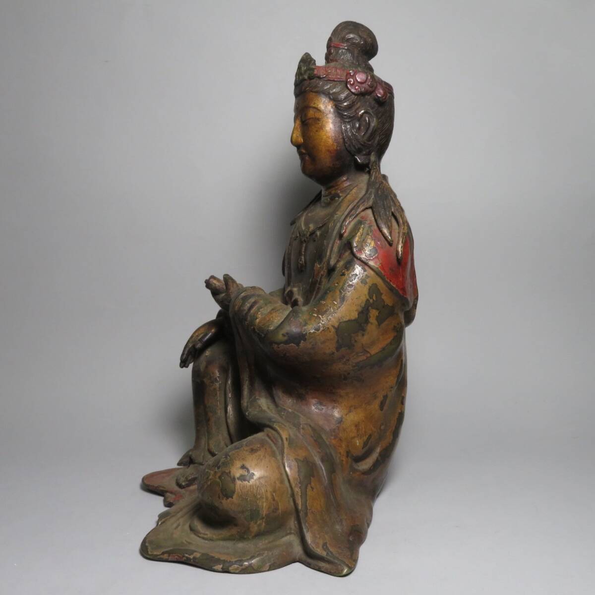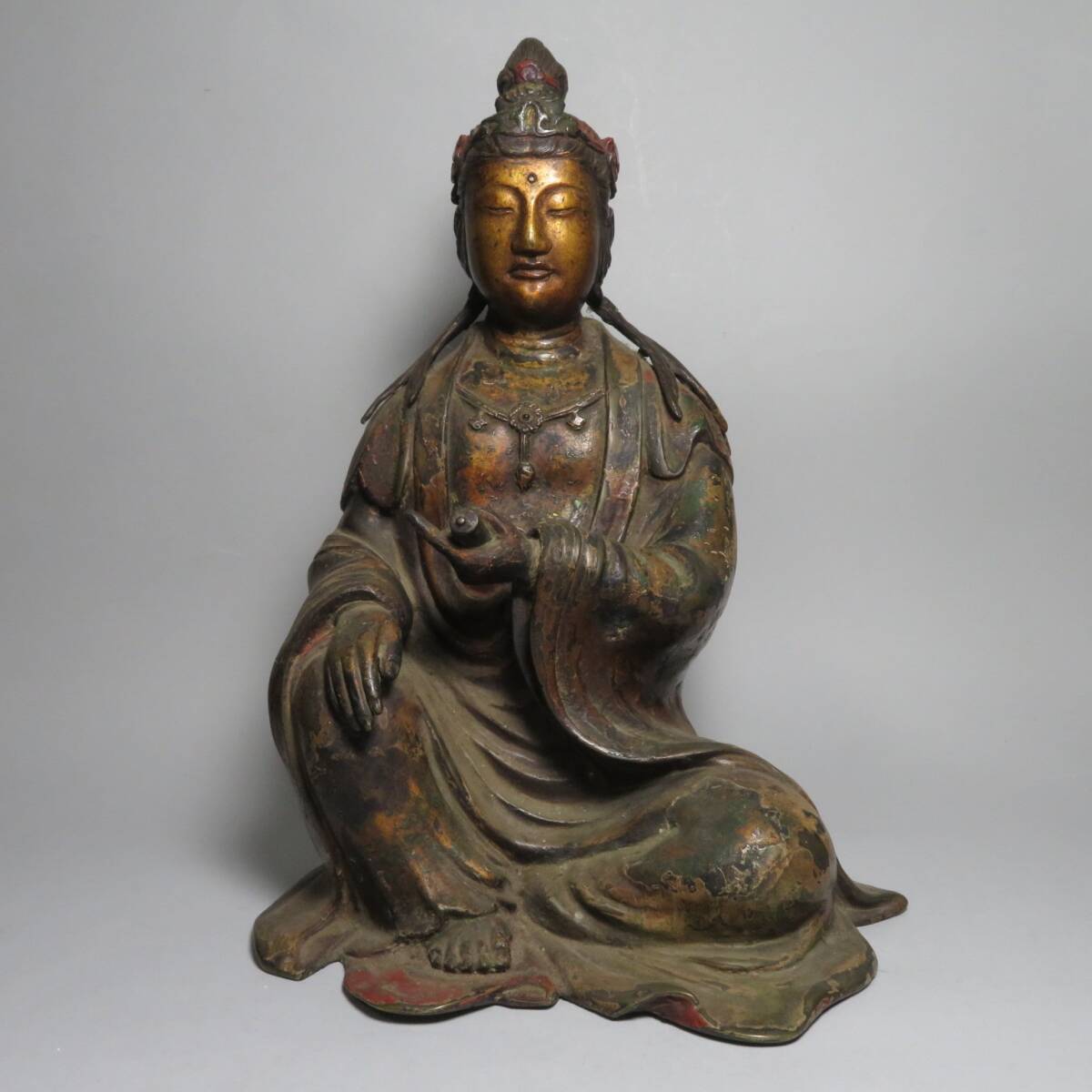 【東】清時代 銅製 金銅観音菩薩坐像 仏像 仏教 中国仏像美術/中国美術 lot:112203