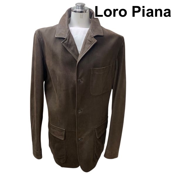 ロロピアーナ Loro Piana レザージャケット 長袖 テーラード シングル アウター ブラウン カーフスキン カシミア M メンズ H5Y022