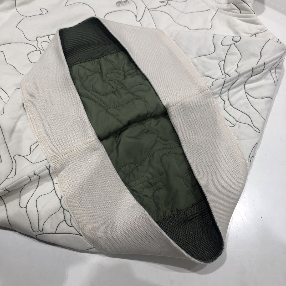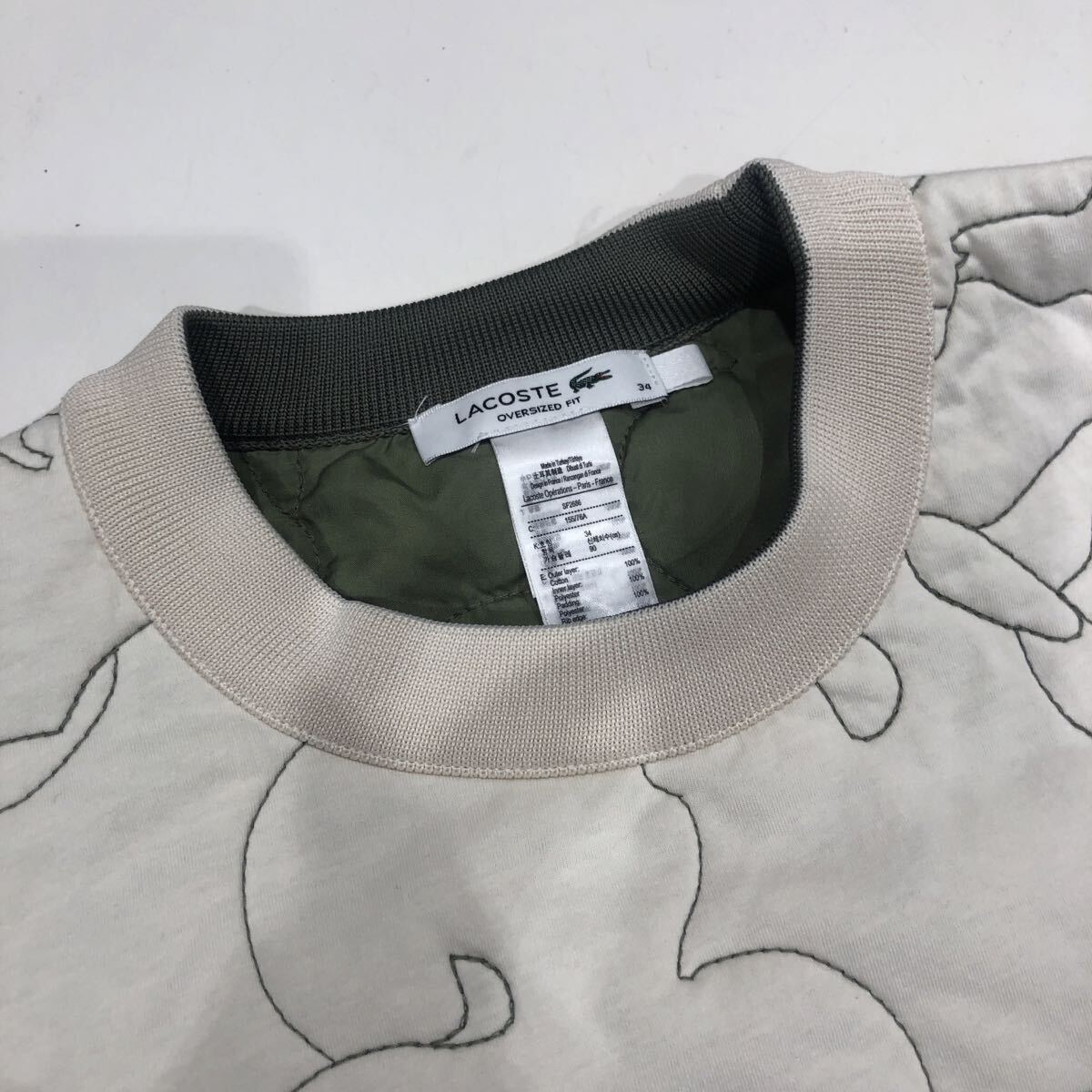 ts20251124【LACOSTE】ラコステ リバーシブルキルティングクルーネック SF2686 スウェット アイボリー カーキ サイズ34 レディース