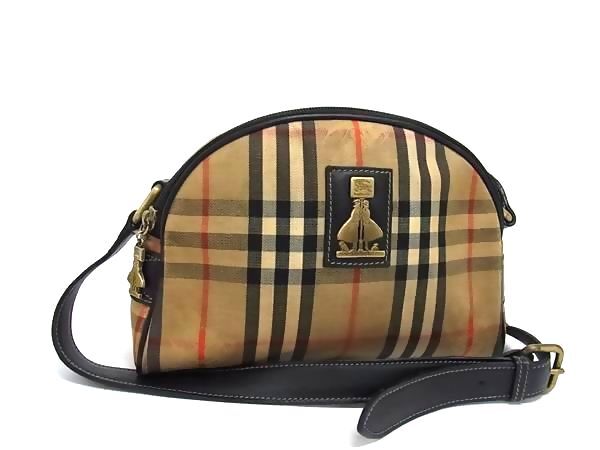 1円 Burberrys バーバリーズ ノバチェック キャンバス×レザー ショルダーバッグ 肩掛け 斜め掛けかばん ブラウン系×ブラック系 FR7065