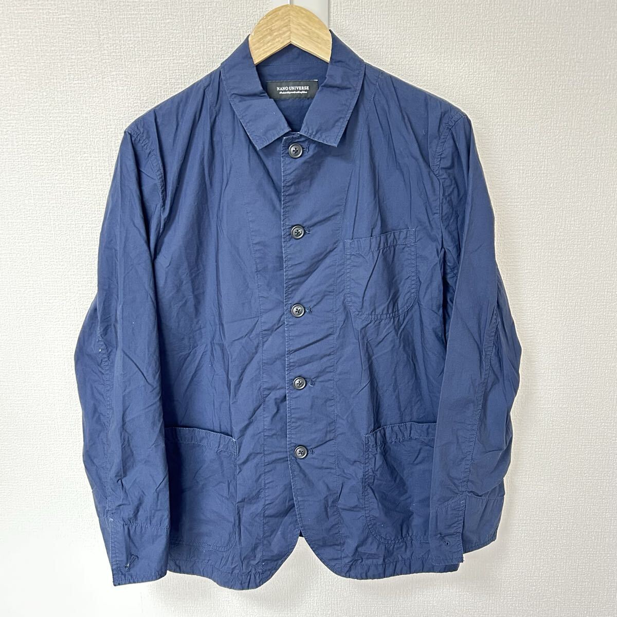 品のある雰囲気◎【NANO UNIVERSE】ナノユニバース シャツジャケット コットン 綿100% 薄手 シンプル ネイビー 紺 メンズM/Y38477YY