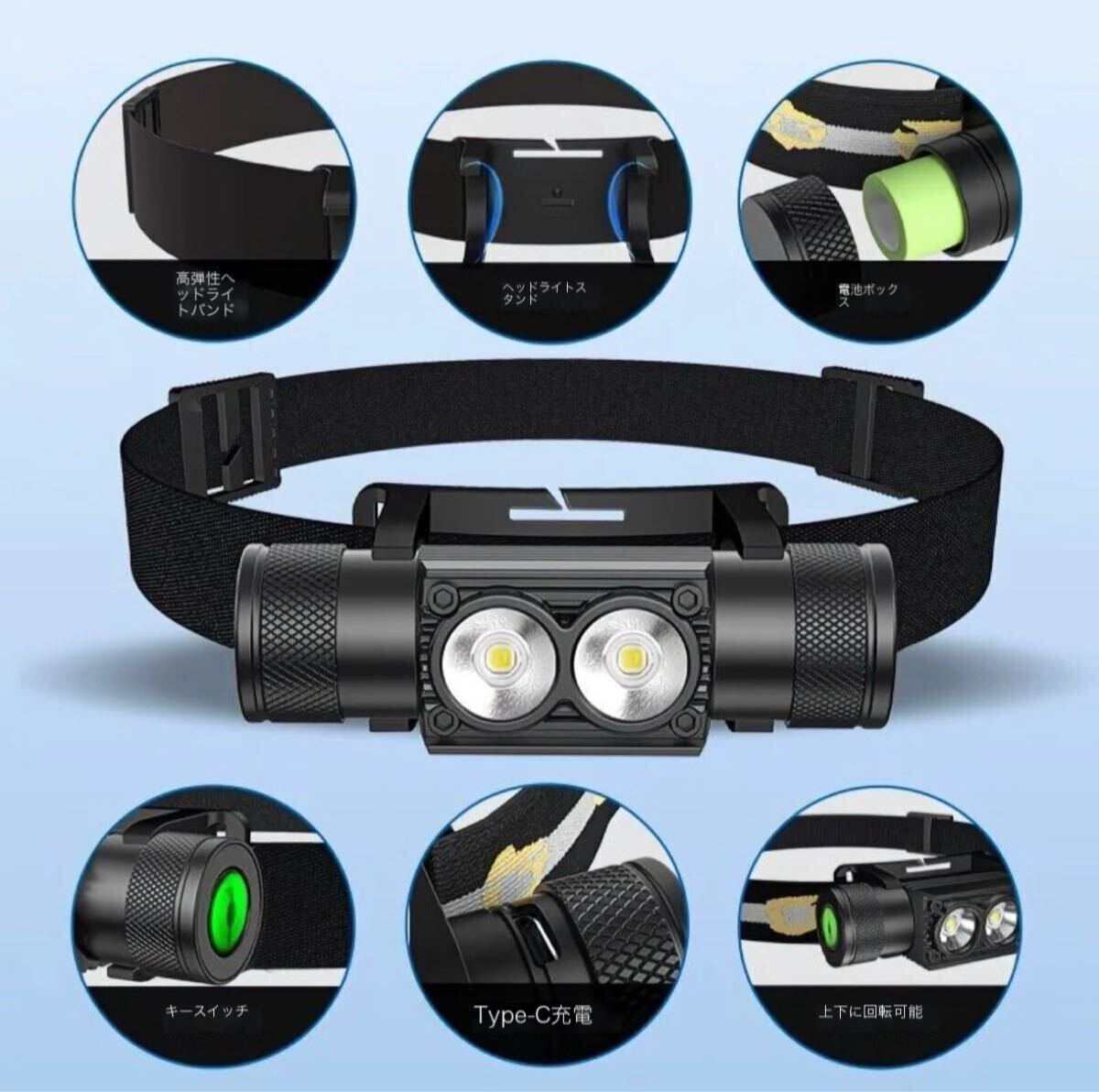 LEDヘッドライト 18650電池&充電器 1000lm 超高輝度 防水 USB充電式 ヘッドランプ バッテリー交換