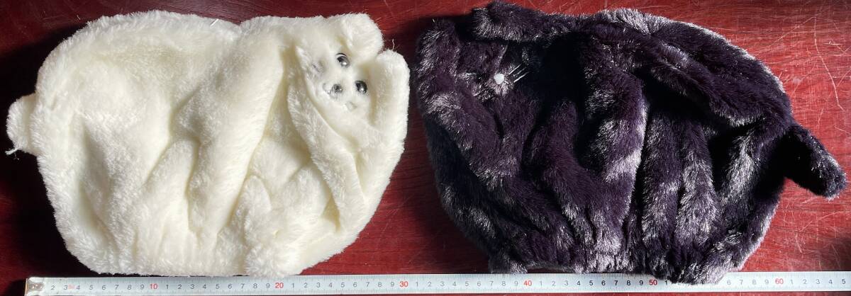 [未使用] ネコのティッシュカバー 2個セット 白猫 黒猫 やわらかい毛