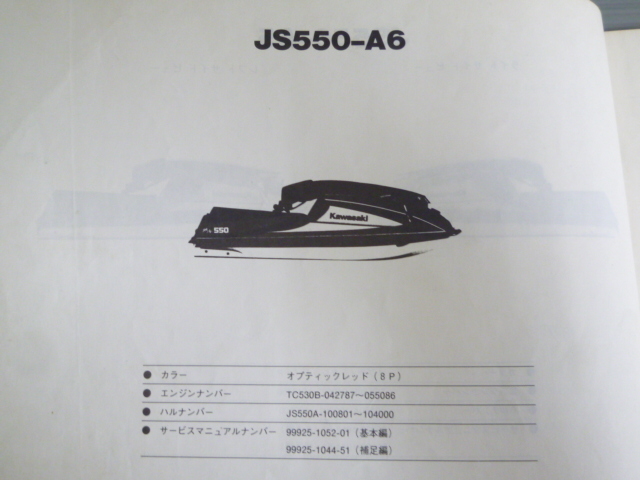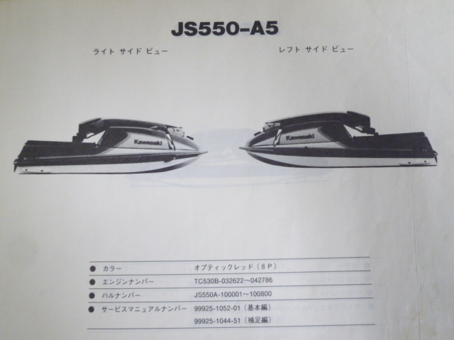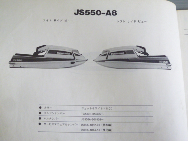 JS550-A5 A6 A7 A8 JET SKI 550 ジェットスキー カワサキ パーツリスト パーツカタログ 送料無料