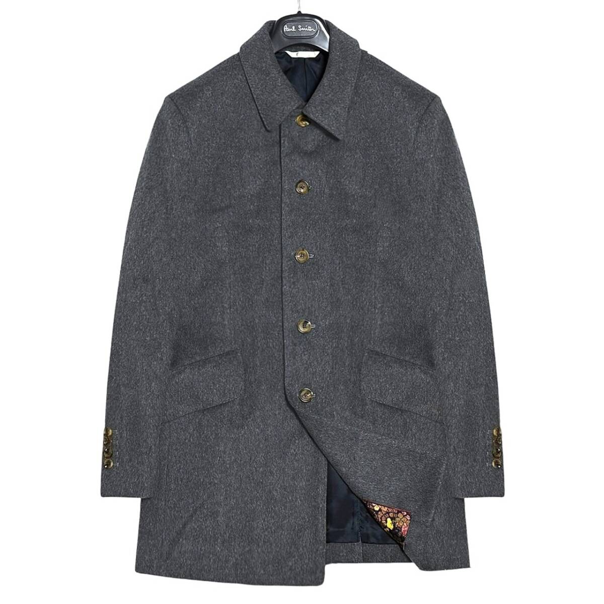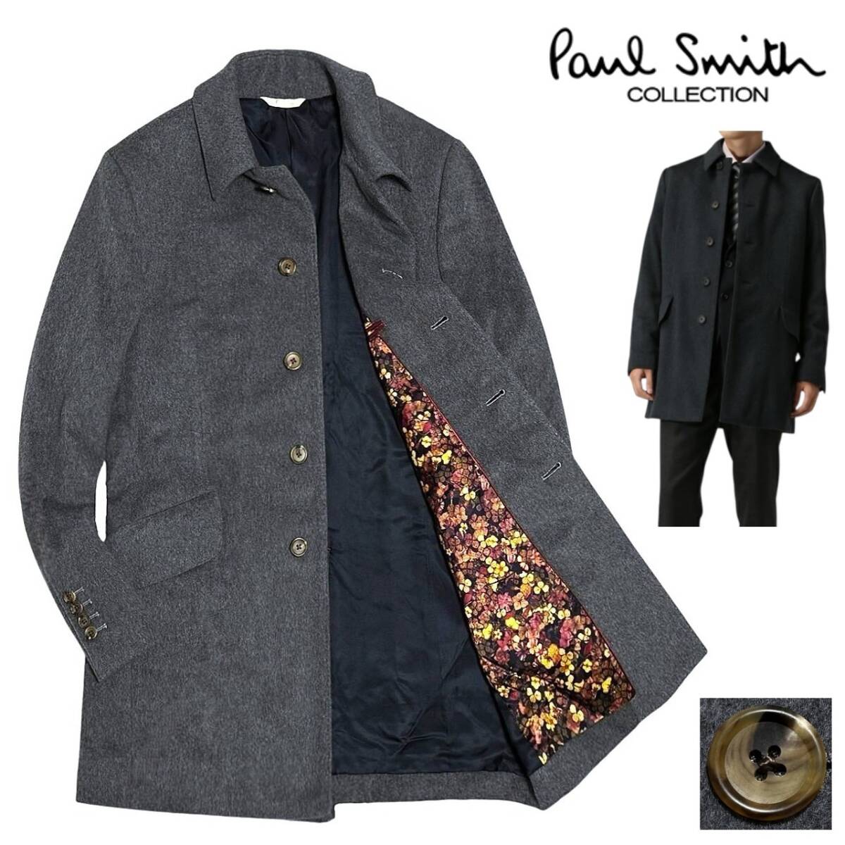 希少! 極美品 定価11万 日本製! ポールスミス 総裏 フラワー 花柄 最高級 カシミヤ x ミンク ステンカラーコート L Paul Smith COLLECTION