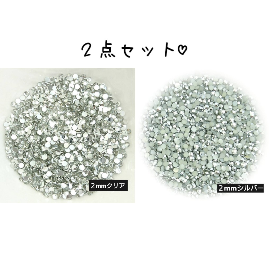 各/約2000粒◆高分子ストーン 2mm/クリア・シルバー/デコパーツ ネイル ラインストーン デコうちわ セルフネイル 匿名配送
