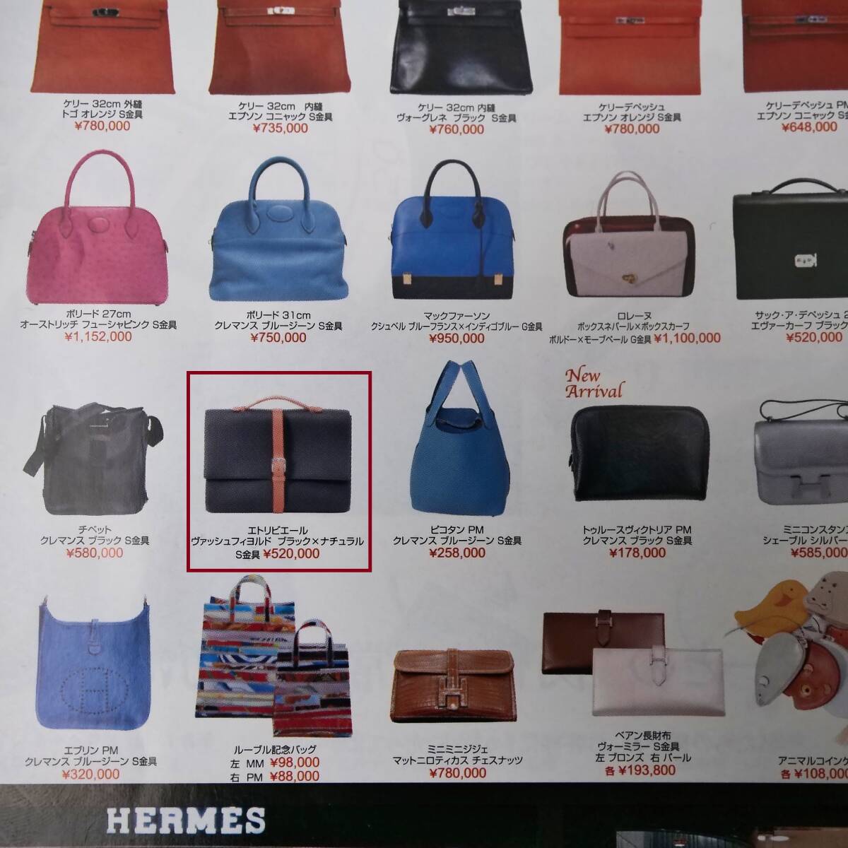 HERMES エトリヴィエール ドキュメント ブラック フィヨルド □H刻印