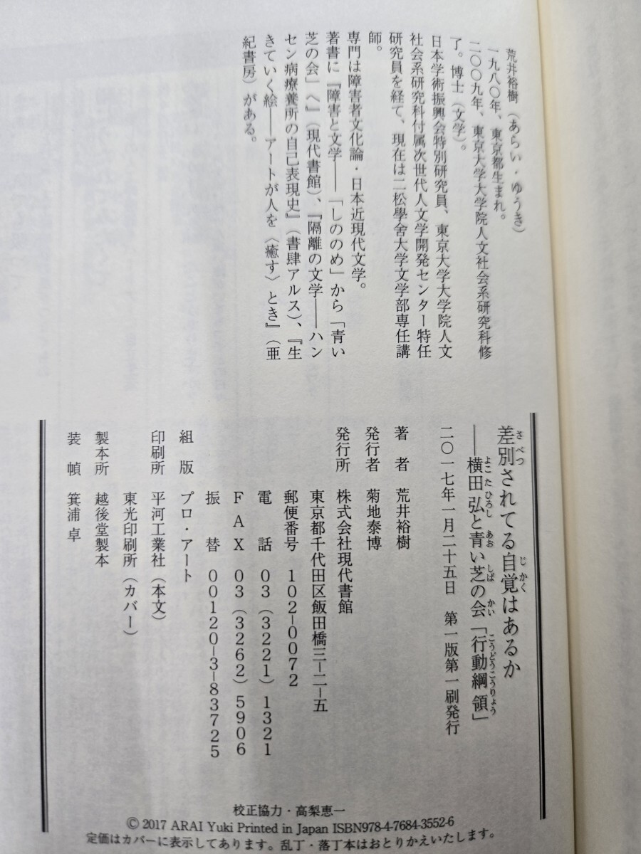 差別されてる自覚はあるか 横田弘と青い芝の会「行動綱領」 荒井裕樹/著【管理番号Ycp本510】訳あり