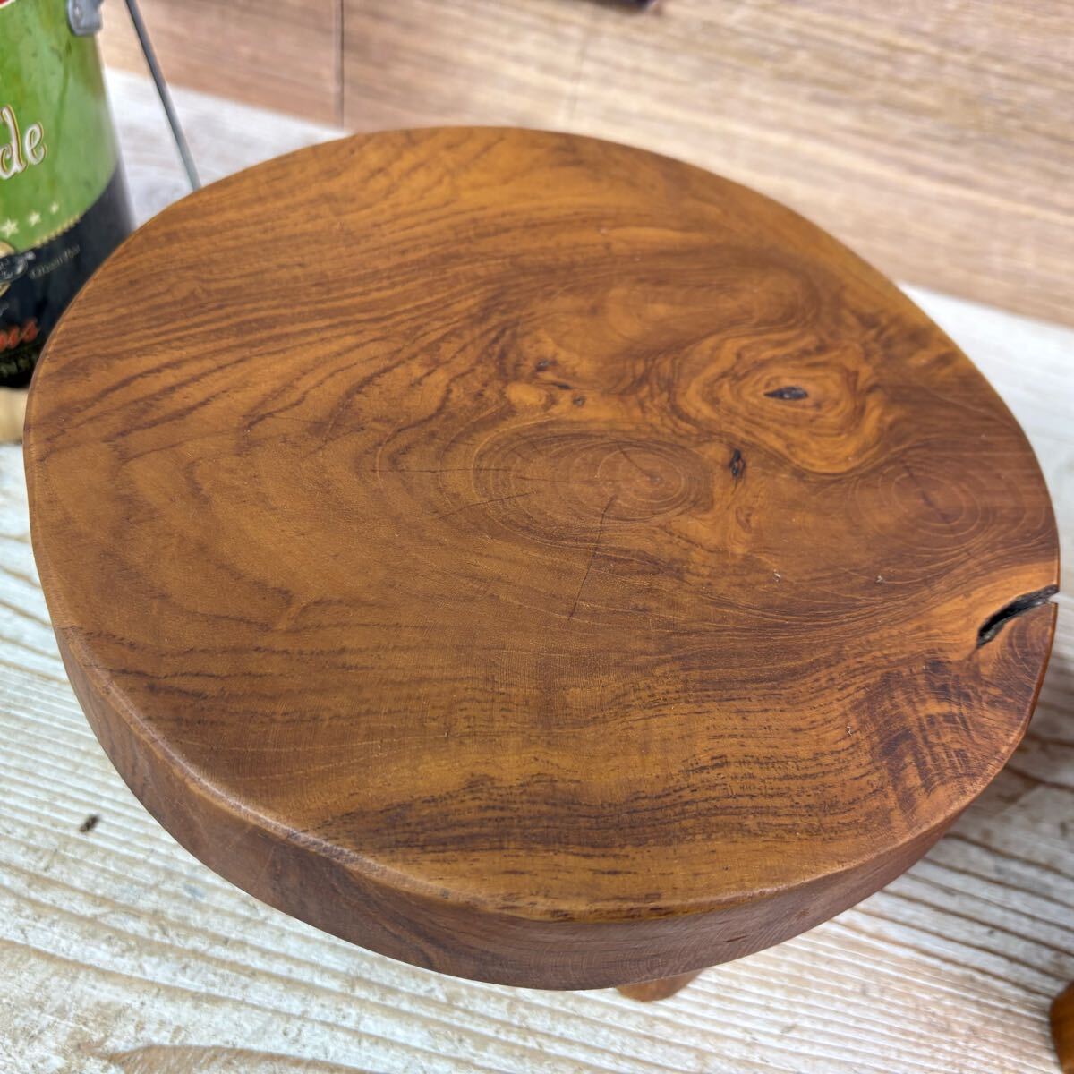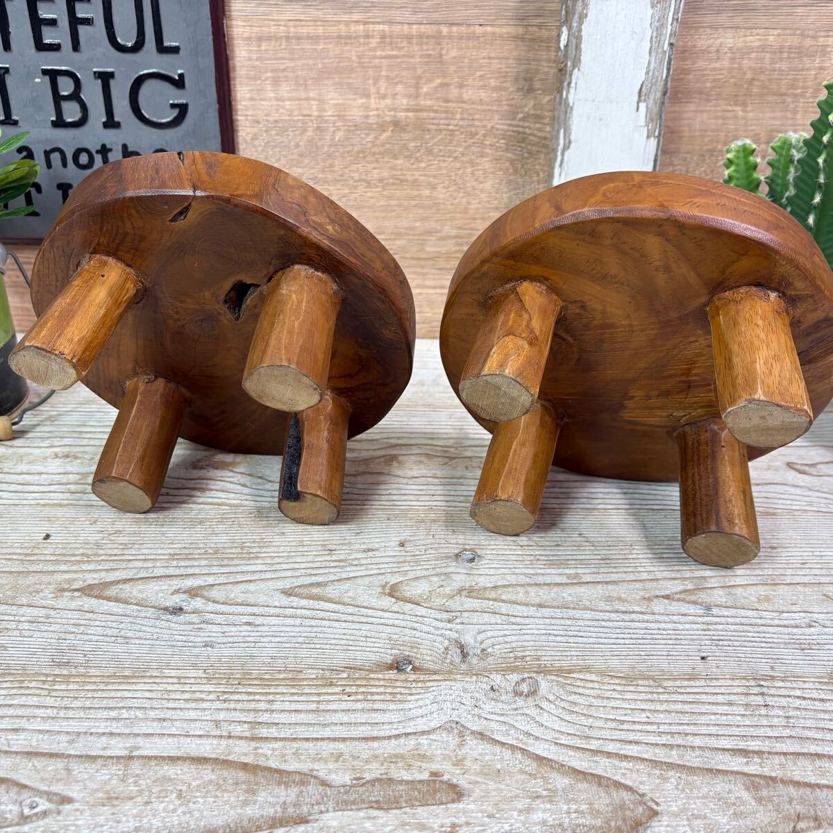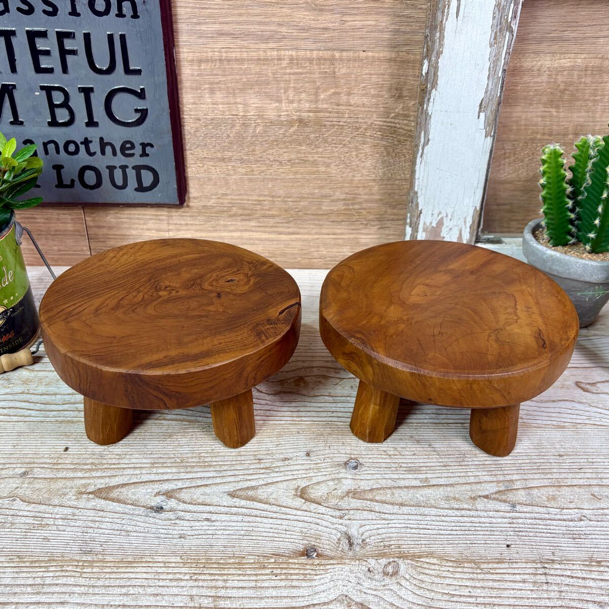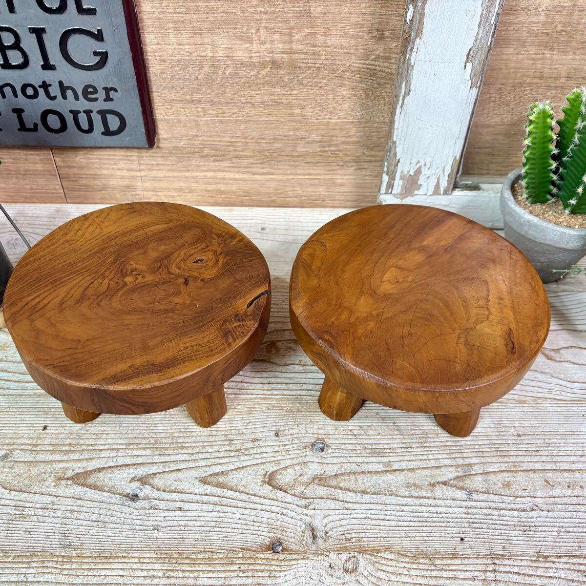 送料無料、オールドチーク天然無垢材、脚付ミニ花台(直径20㎝)2点セット、飾り台、フラワースタンド、ミニテーブルディスプレイ台