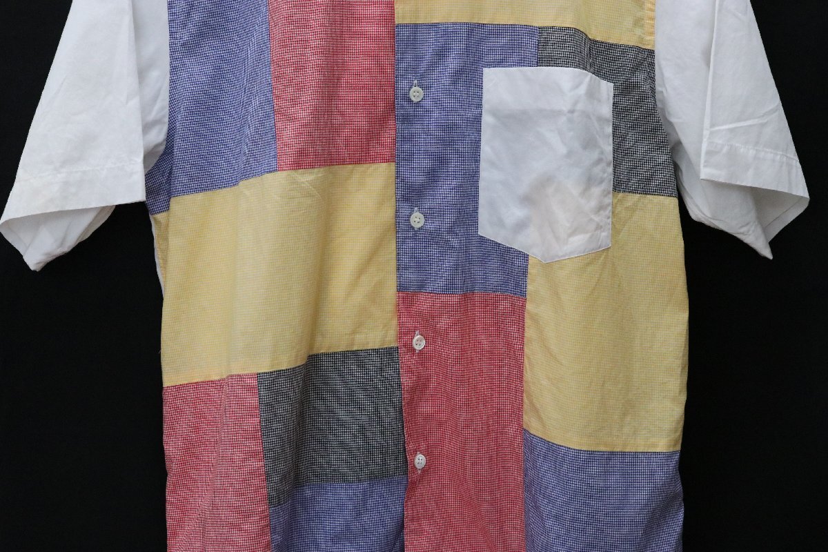 【中古美品】COMME des GARCONS HOMME PLUS コムデギャルソン オムプリュス オープンカラーシャツ サイズM相当 98SS パッチワーク【漂亮】