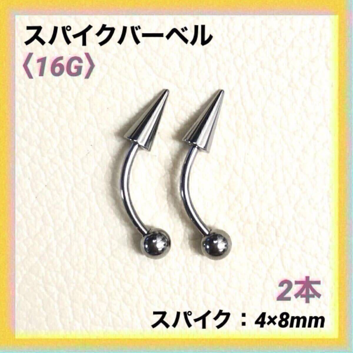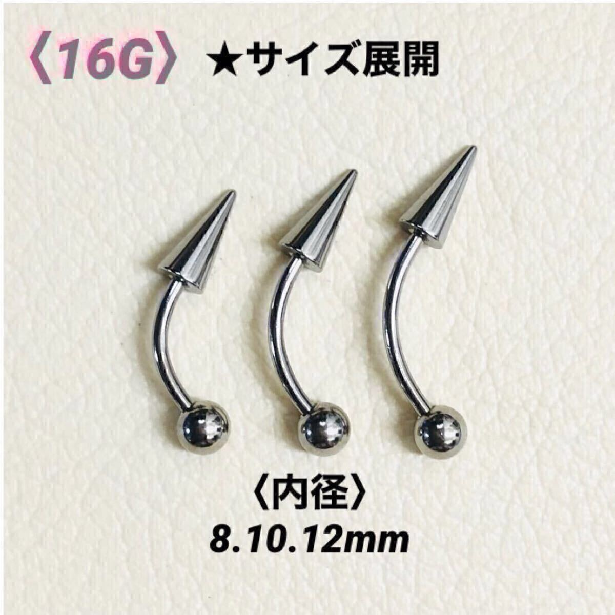 2本 スパイク ロングコーン バナナバーベル 16G内径10mm ボディピアス