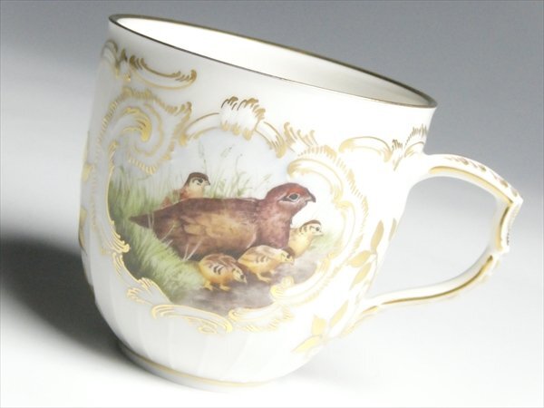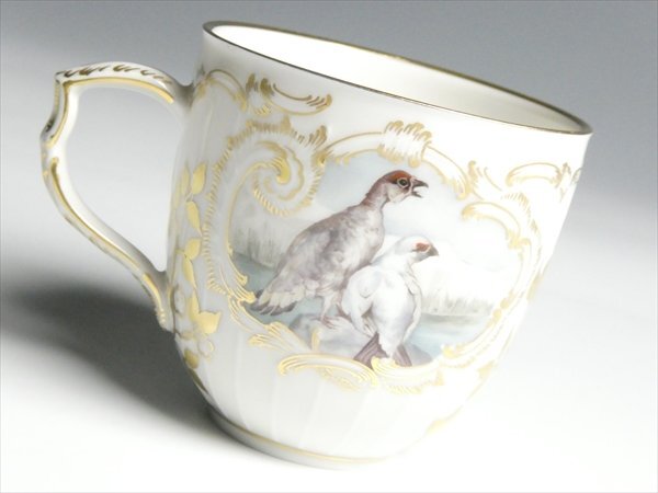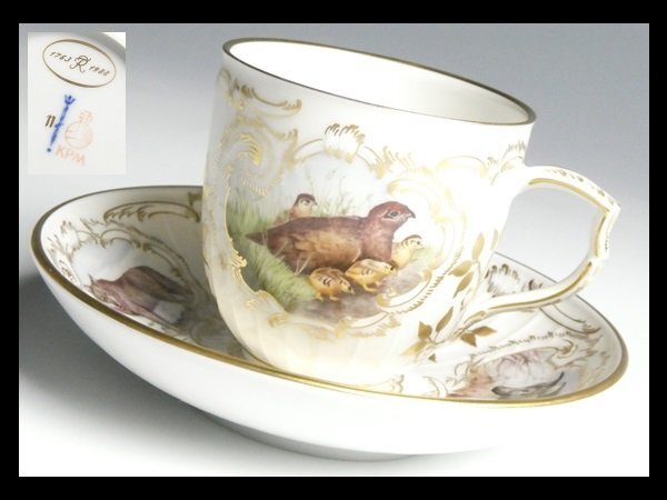 KPM ベルリン王立磁器製陶所 希少作品 高級シリーズ 金彩 ハンドペイント バード アニマル 鳥と動物絵 カップ&ソーサー ① n997