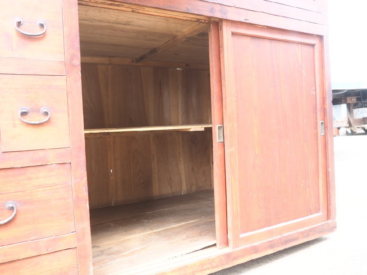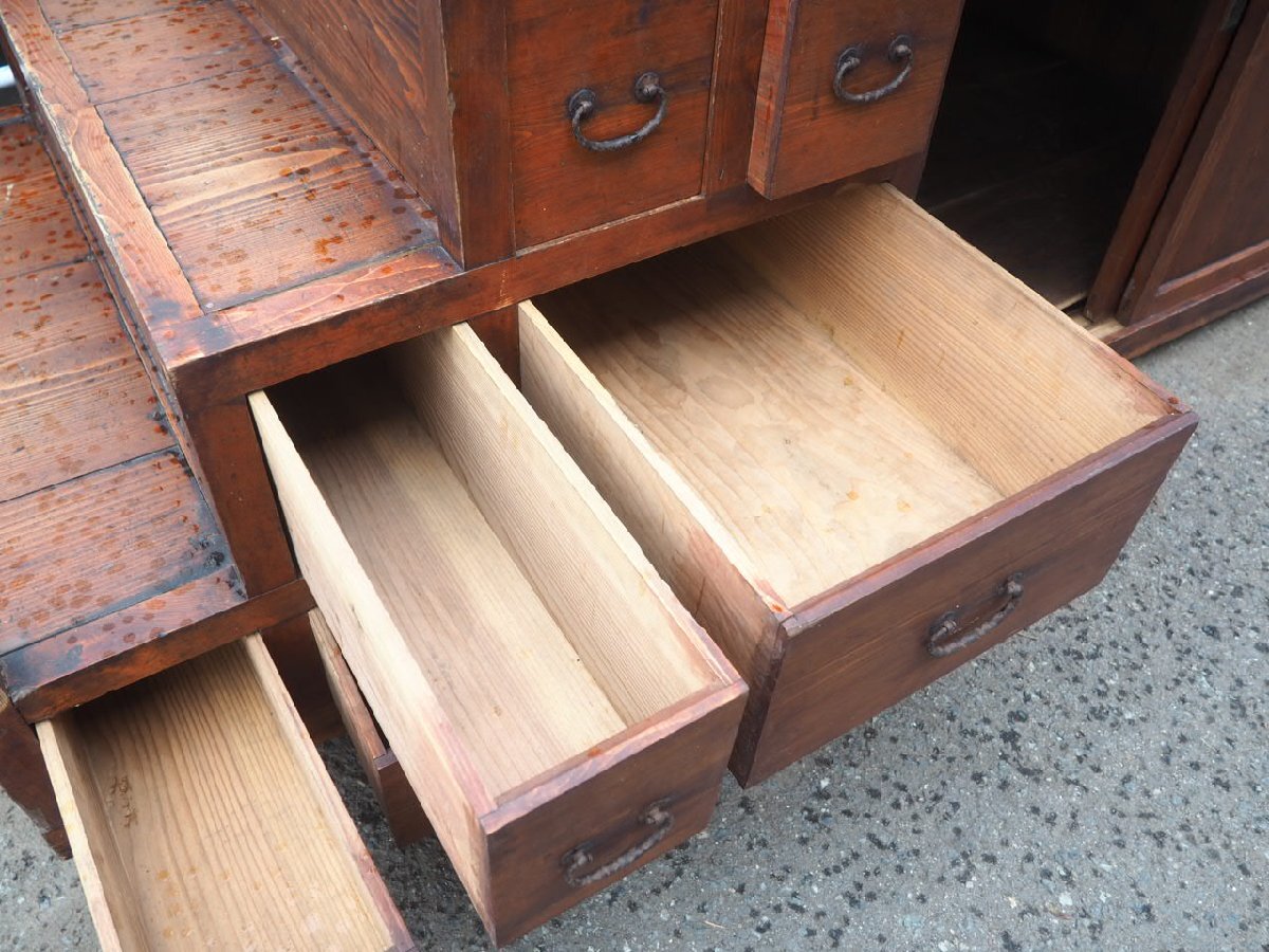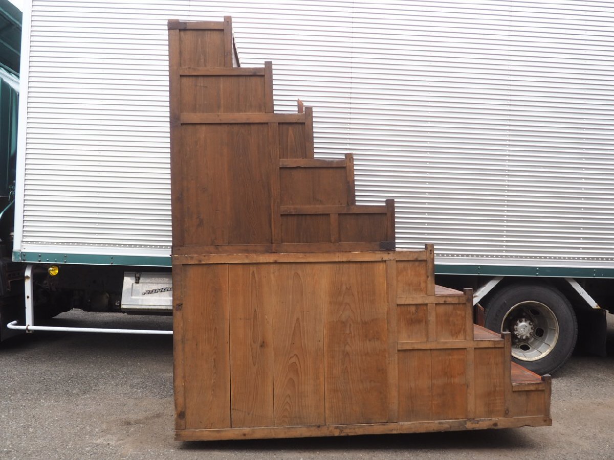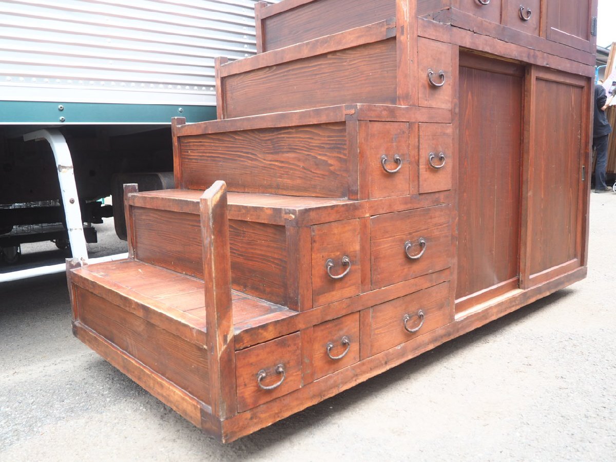X1525◆H210cm×W191×D92(cm)◆アンティーク◆特大◆重厚な大きい階段箪笥◆飾り棚 陳列棚 展示台 水屋箪笥 タンス レトロ伊