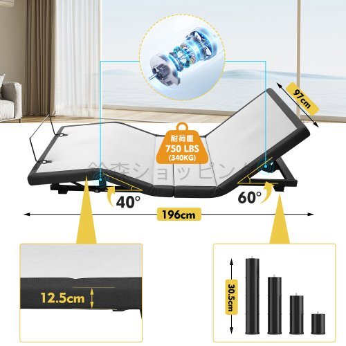 【国内発送】電動ベッド 折りたたみベッド 畳ベッド 2モーター 196*97cm ベッドライト付き usbとtypec付き シングル 家庭用 組立簡単 高さ