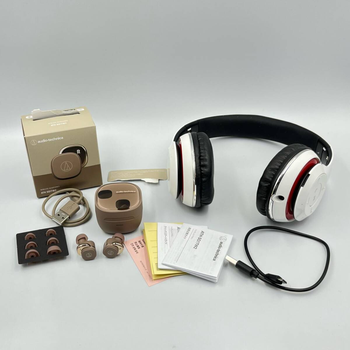 B3977★イヤホン&ヘッドフォン 2点まとめ audio-technica まとめ商品 YBE-12,ATH-SQ1TW2