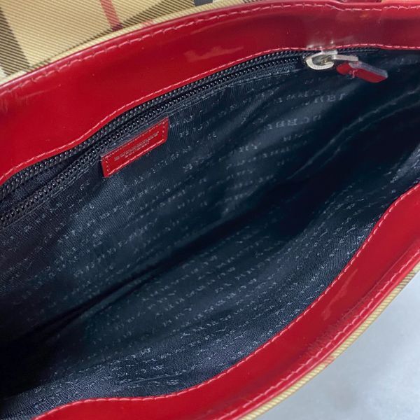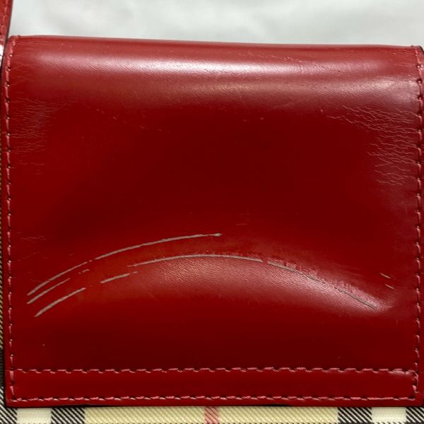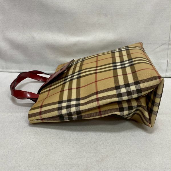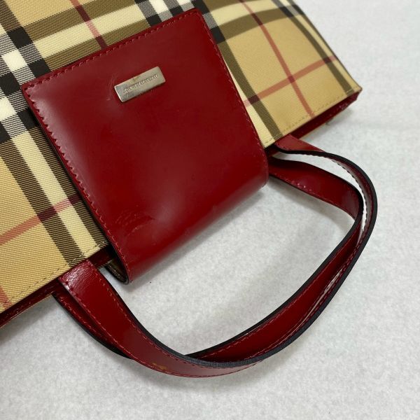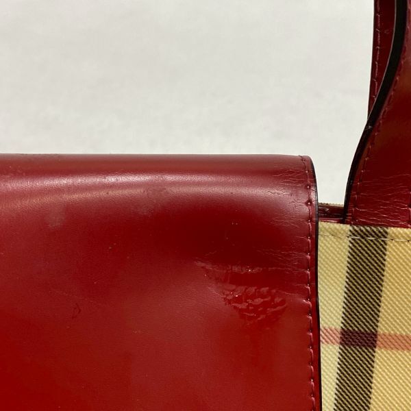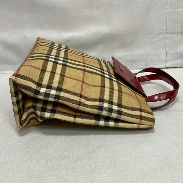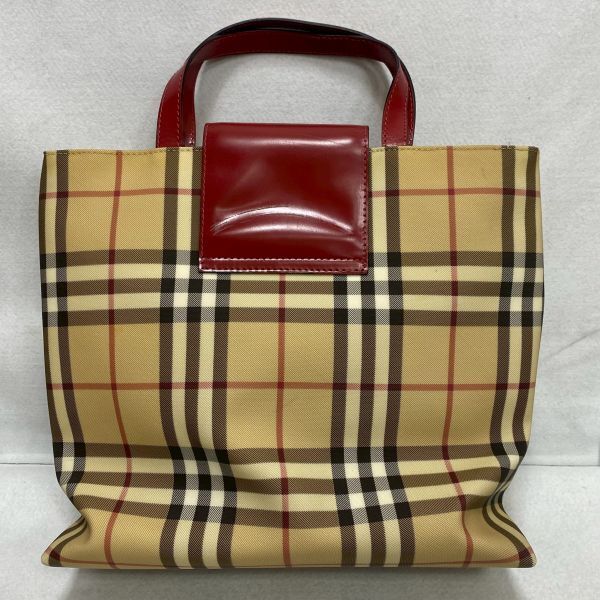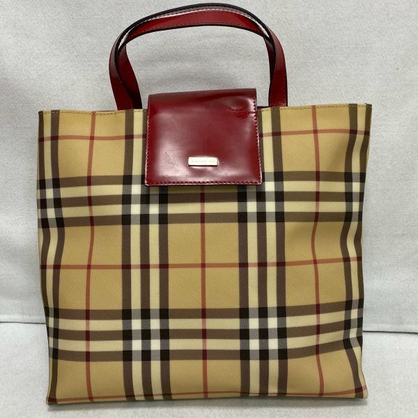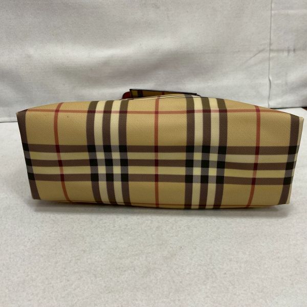F202-S2 BURBERRY バーバリー ハンドバッグ トート 手持ち 鞄 ノバチェック PVC×レザー レッド系 レディース 約26×30.5×10cm 1952254