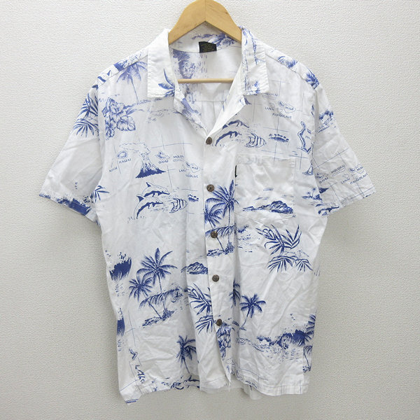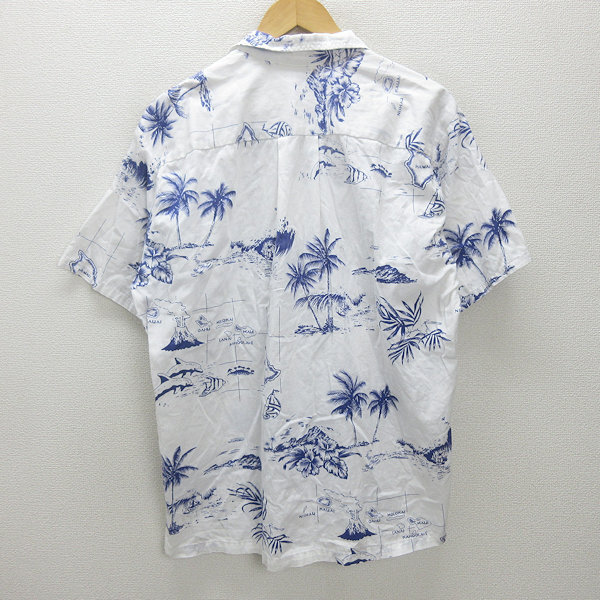 G■パームウェーブハワイ/palmwave hawaii オープンカラーシャツ/アロハシャツ【L】白青/men's/65【中古】■
