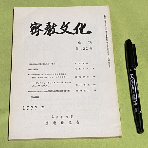 密教文化 季刊 第122号 高野山大学 密教研究会 / 譲法・総持 BUDDHAGUHYA・仏身論・胎蔵 生曼荼羅・四身・五智・五色