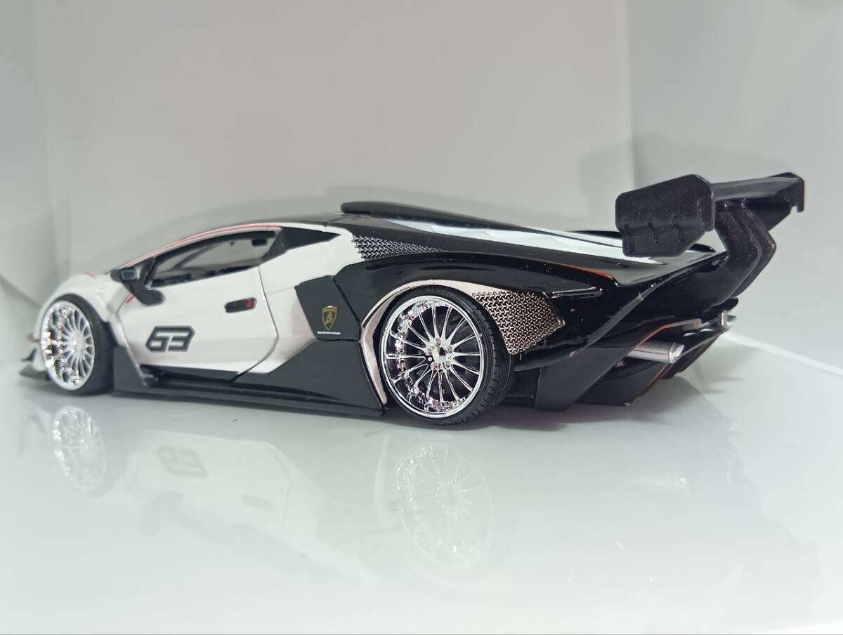 1/24 burago lamborghini Essenza SCV12 (1971) 改 深リム ローダウン 改造 エッセンツァ SCV12 AmistadRotino 19inch カスタム ブラーゴ