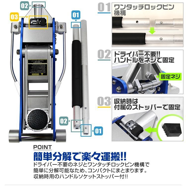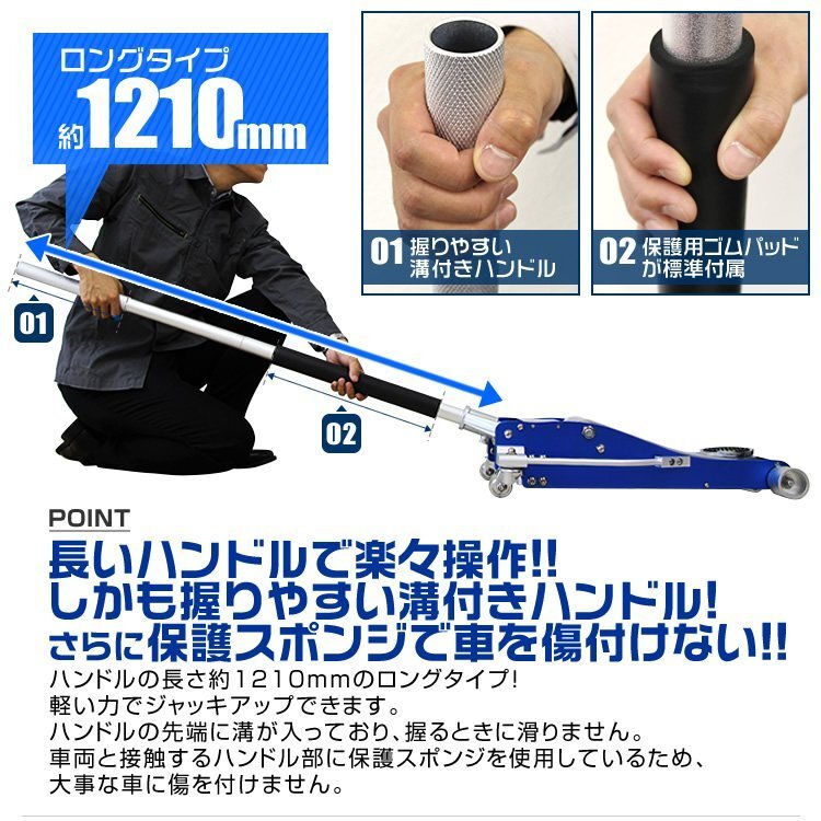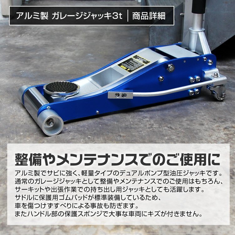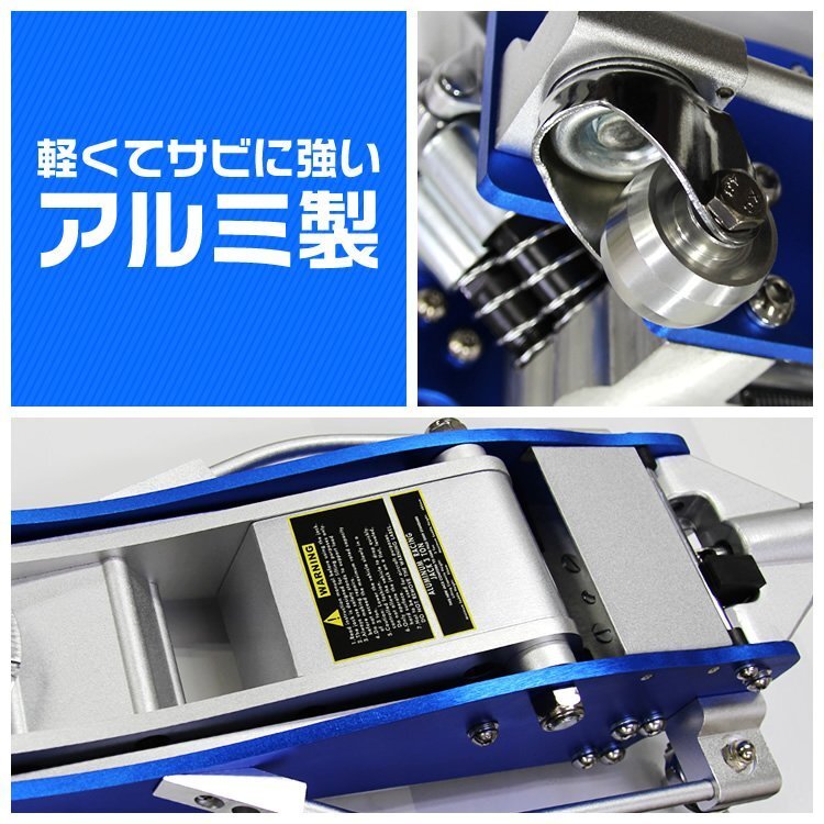 【数量限定】ブルー 低床フロアジャッキ 3t アルミ製 油圧式ガレージジャッキ ローダウン 95mm ⇔ 485mm デュアルポンプ採用 青 ブル-