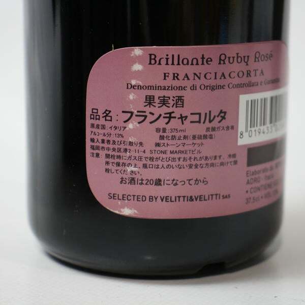 【12本セット】Brillante(ブリランテ)フランチャコルタ ルビー ロゼ ハーフボトル 13% 375ml X25J030148